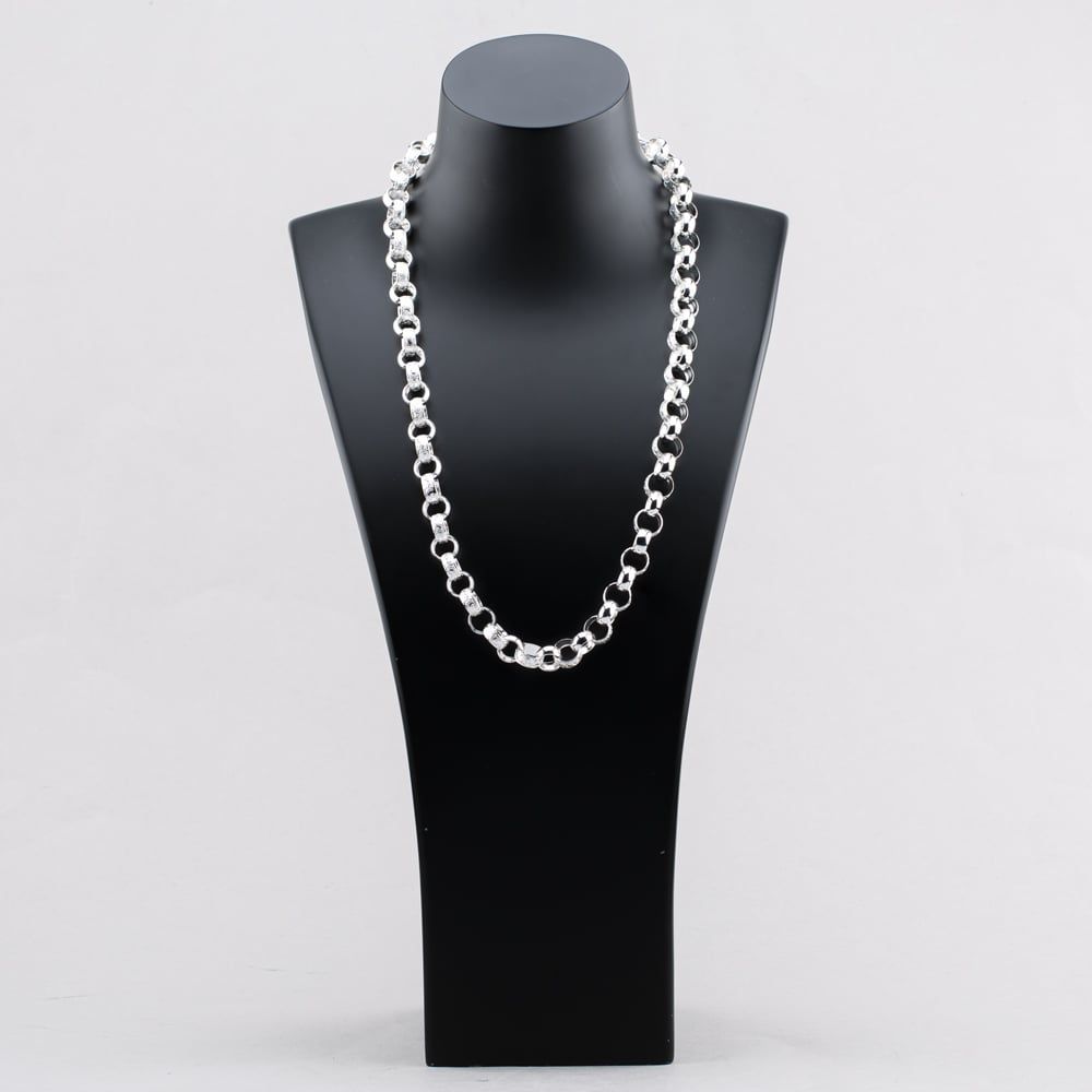 Elevate your look with this stunning 24-inch Silver Gold Tone Tulip Chain Necklace. Featuring an intricate patterned design, this eye-catching piece blends silver and gold tones for a sophisticated finish. Secured with a reliable lobster clasp, it's perfect for both everyday wear and special occasions.