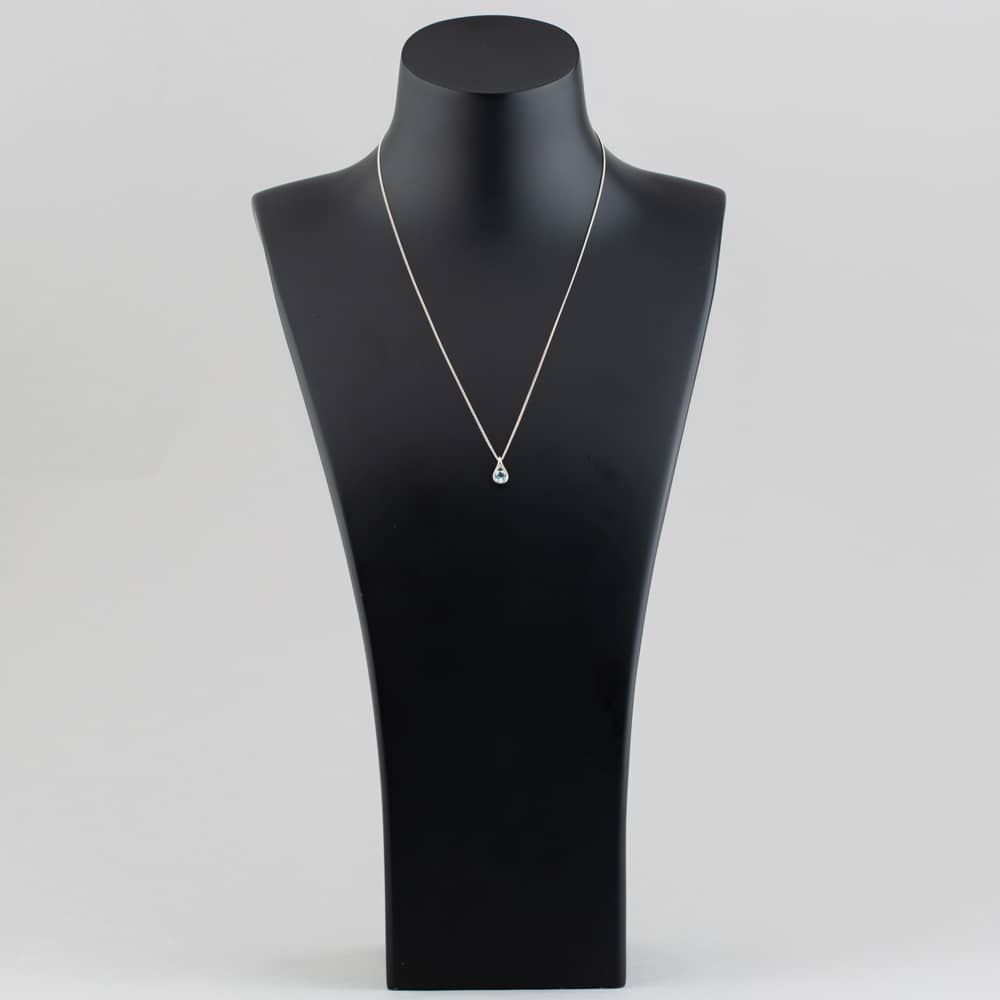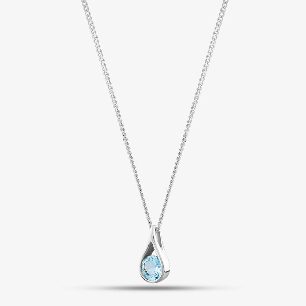 This delightful modern-styled pendant is delicately crafted from sterling silver and set with a single blue topaz gemstone, suspended on a curb chain.