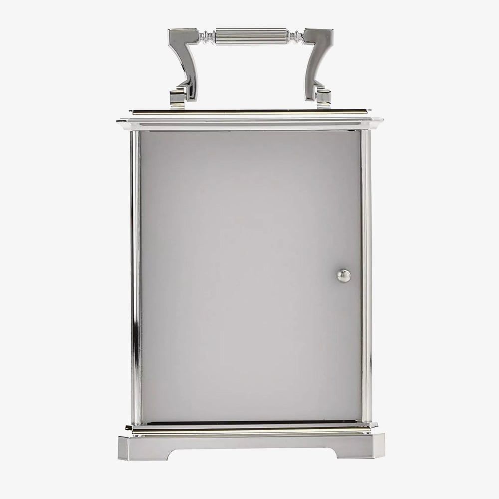 https://www.thbaker.co.uk/silver-traditional-carriage-clock-w2407178550Silver Traditional Carriage Clock W2407https://www.thbaker.co.uk/media/catalog/product/2/7/27-03-25156012_01.jpg74.9574.95GBPInStock/Gifts/Clocks/Gifts/Clocks/Carriage Clocks/testing-categories/Test_Andrew/THB-1888-Widdop/Gifts6727800879833687123687672764287149Sil Carriage Clock Enhance your home with traditional styling with this silver carriage clock by WM Widdop. Powered by the Quartz movement the clock face features Roman numeral hour markers and fancy black hands. The cool hue of the silver tone plating has a combination of smooth and textured side detailing, making an attractive centrepiece for mantels and bedside tables. Battery operated, not included.