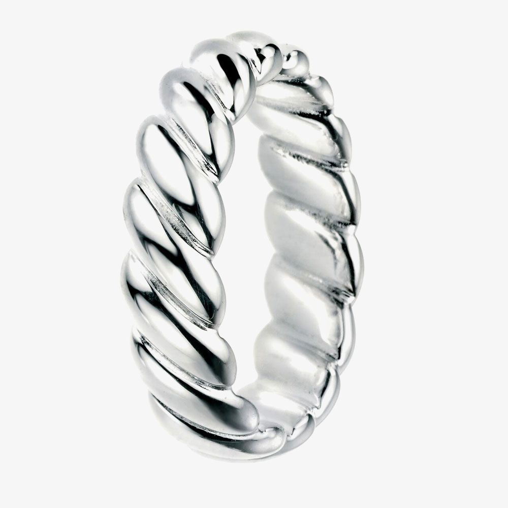 This simple but effective wide, sterling silver twist ring will make the perfect accessory to any outfit. Wear stacked with another, narrower ring for added effect.