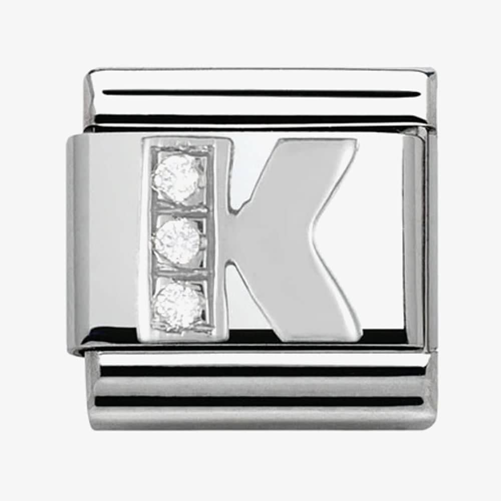 Create a personalised look on your Classic Composable bracelet with the Silvershine Letter K from Nomination. The eye-catching stone set design is perfect for spelling your name or adding initials to your collection.