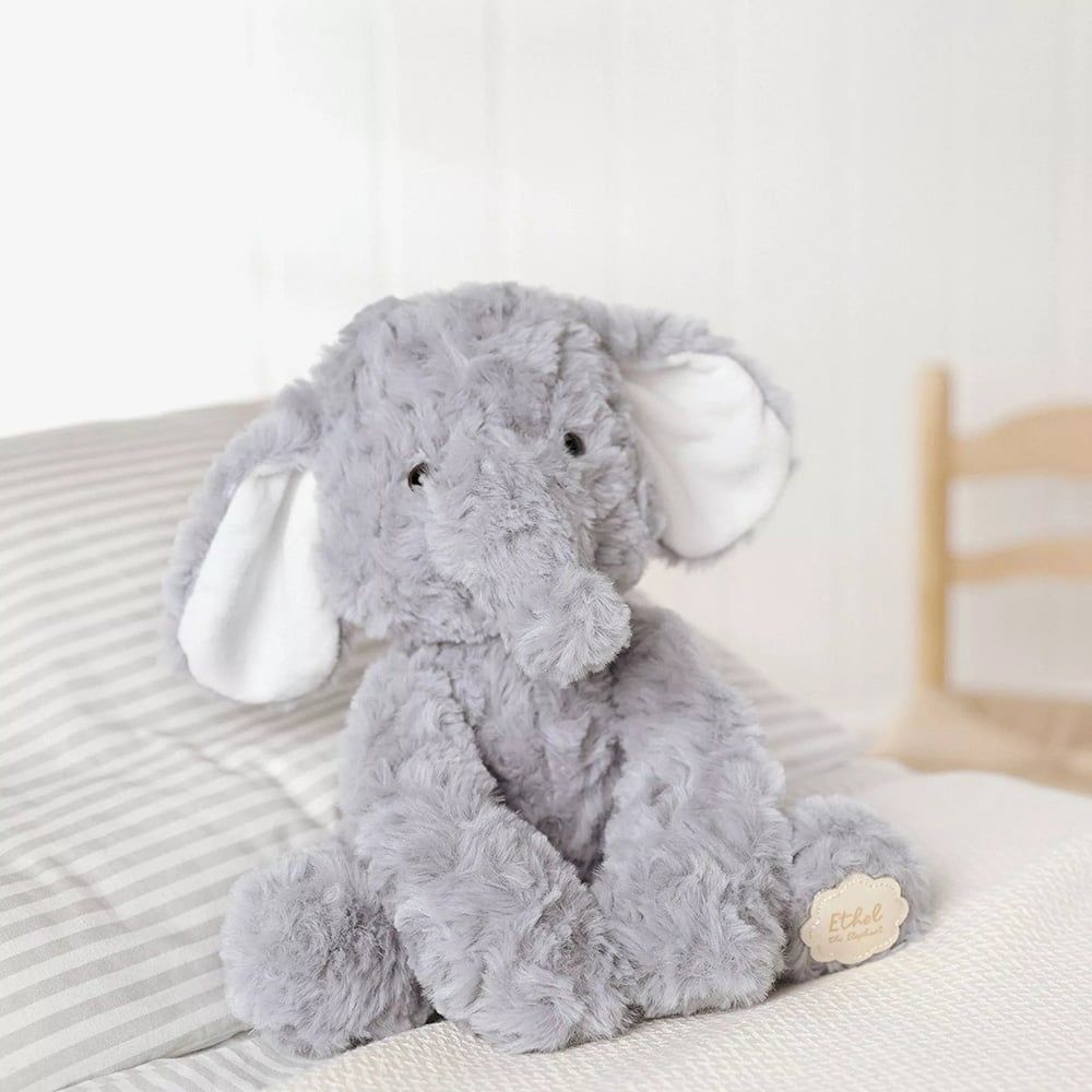 Say hello to Ethel, a cuddly Softies plush elephant in gentle grey, ideal for children aged 0–3 years. With soft fur and large ears, Ethel is perfect for snuggles and comfort. She will also sit sweetly on any flat surface. A delightful gift or keepsake for your nursery.