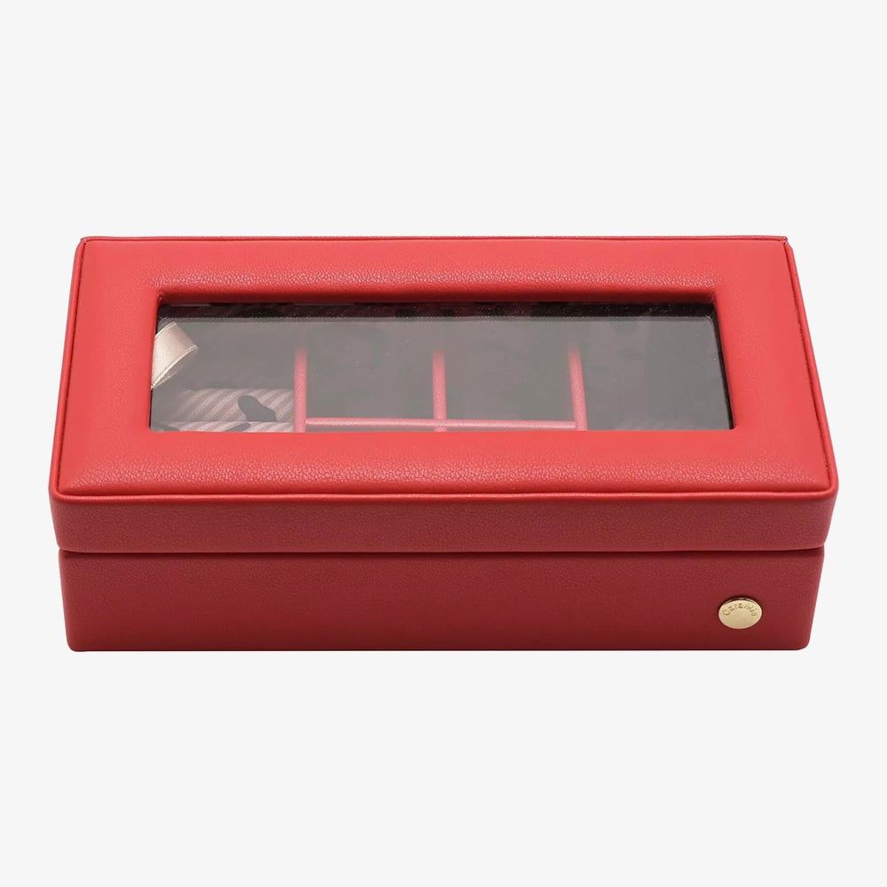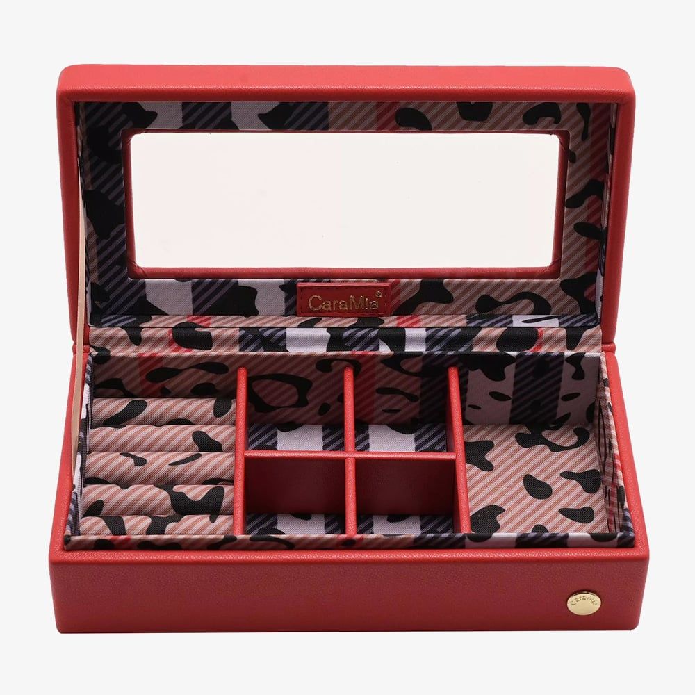 Showcase your jewellery in style with this unique ‘Catwalk’ jewellery display box from CaraMia®. Crafted from red vegan leather, it opens to reveal a decorative storage area with tailor-made compartments for rings, earrings, and other jewellery pieces. A stylish and practical addition to any collection.