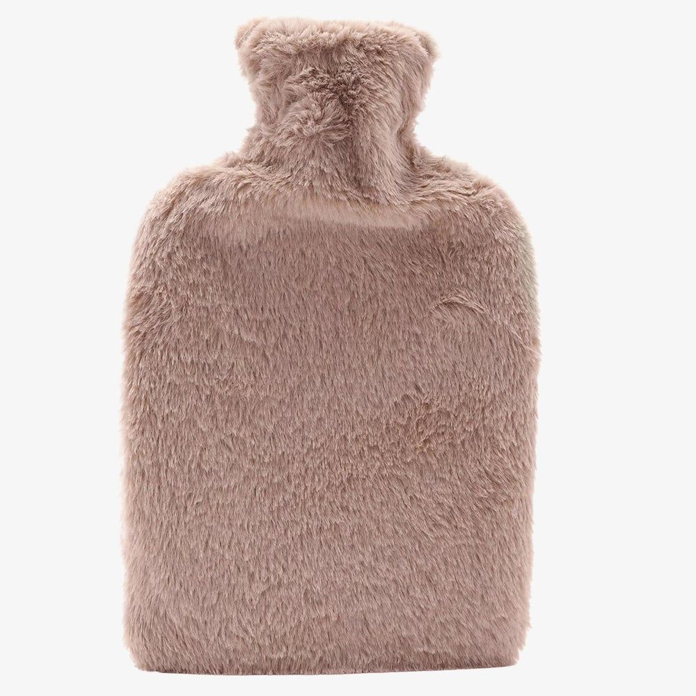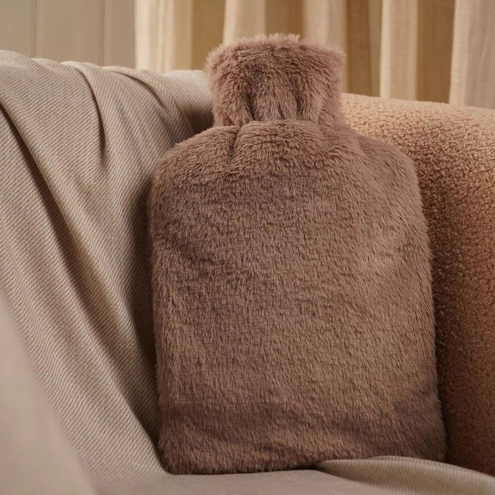 Stay warm on chilly nights with the Sophia Layers Hot Water Bottle. The faux fur cover in a soft brown, blush pink taupe colour features a muff design so that the water bottle can be hugged and the outside of your hand stays warm too.