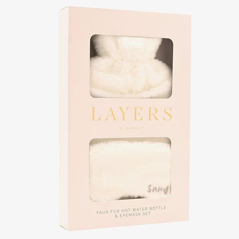This hot water bottle and eye mask gift set from the Layers collection from Sophia is a sweet gift for someone who deserves a little extra relaxation. Including a 1.7 litre capacity hot water bottle with a white faux fur cover and a matching eye mask.