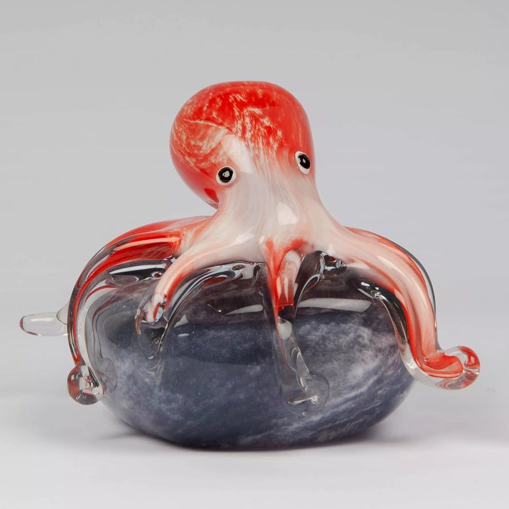 From the Objets D'Art collection by Sophia, this beautiful octopus figurine is crafted from hand blown glass and features the adaptable creature resting on a rock. A showcase of exquisite craftsmanship this figurine is perfect as a display item or can be used as a paperweight, and captures the artistry of glass blowing. Presented in a luxury, satin lined gift box.