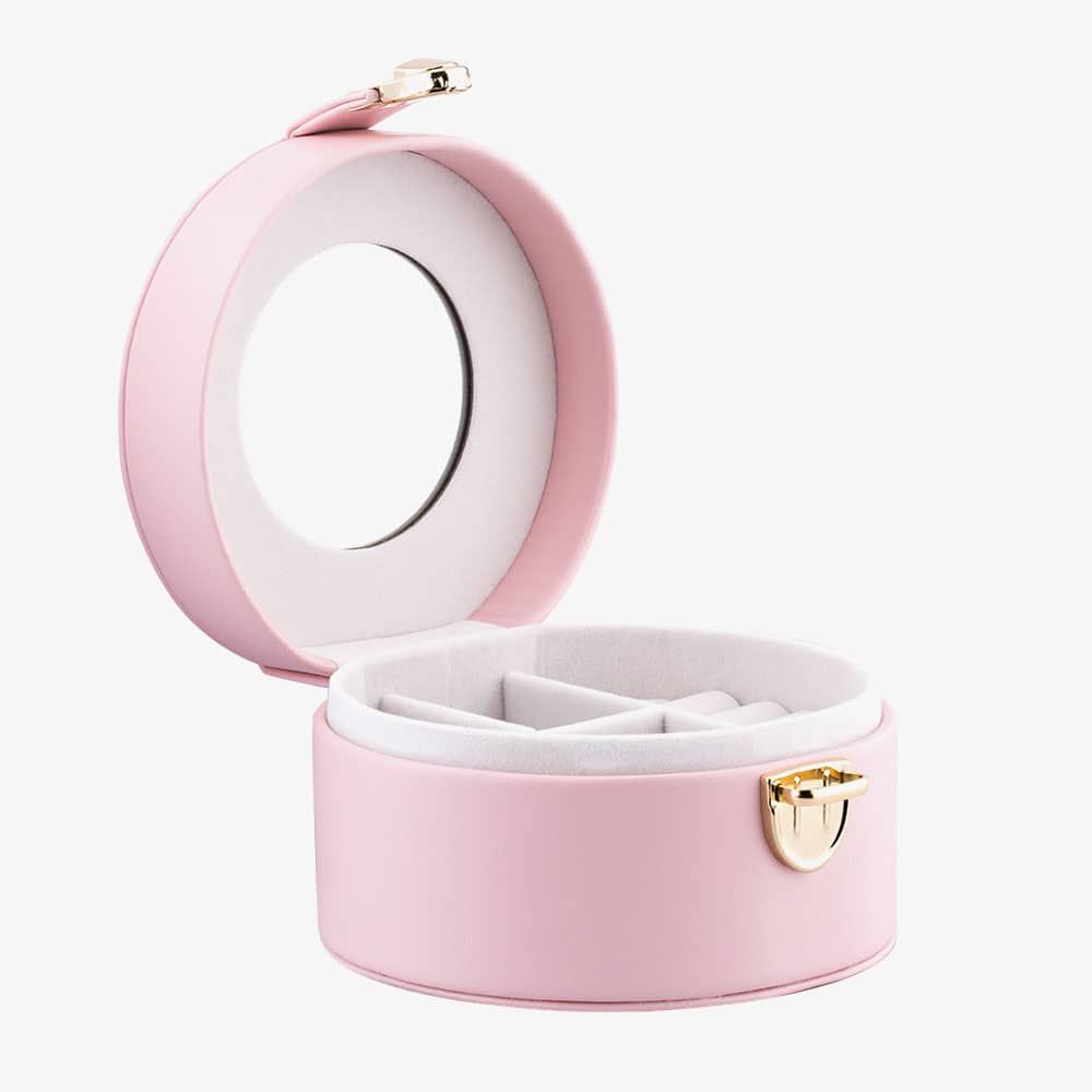 This jewellery box features a delicate round shape, adding a soft touch to any dressing table.