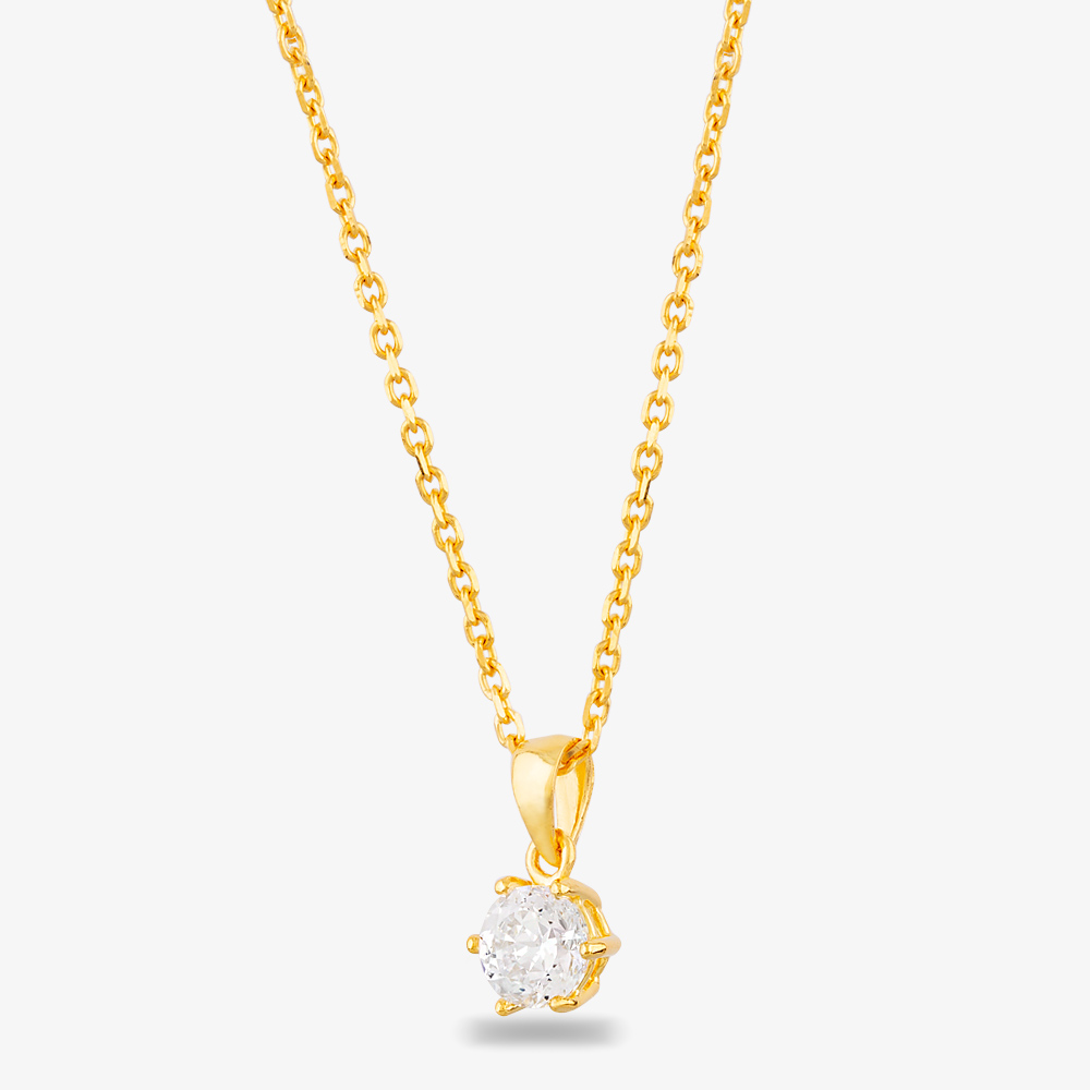Give your outfits a stylish sparkle with this attractive pendant necklace from Starbrights Christmas 2018 range. The elegant gold-plated sterling silver chain holds a six claw pendant and radiant round 6mm cubic zirconia, faceted to catch the light beautifully. A jewellery box essential to suit any occasion.