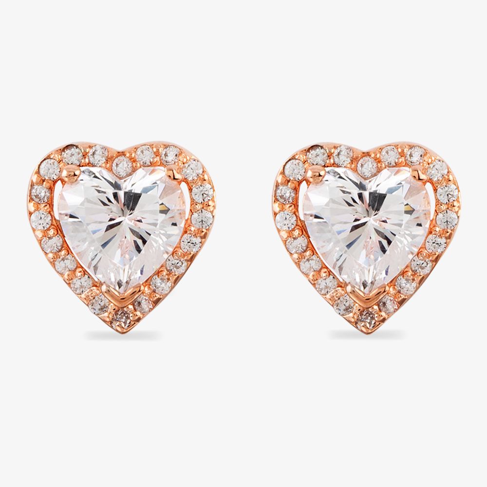 A beautifully faceted martini-set heart-cut cubic zirconia stone is framed with delicate pavé to add a touch of shimmer to your wardrobe as the focus of these handcrafted rose tone studs. The shimmer of the stones complements the highly polished finish of the piece perfectly.