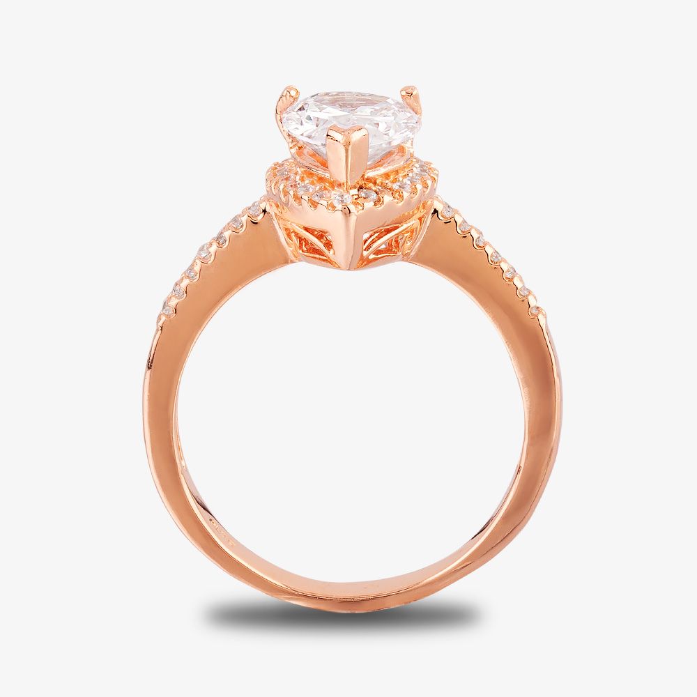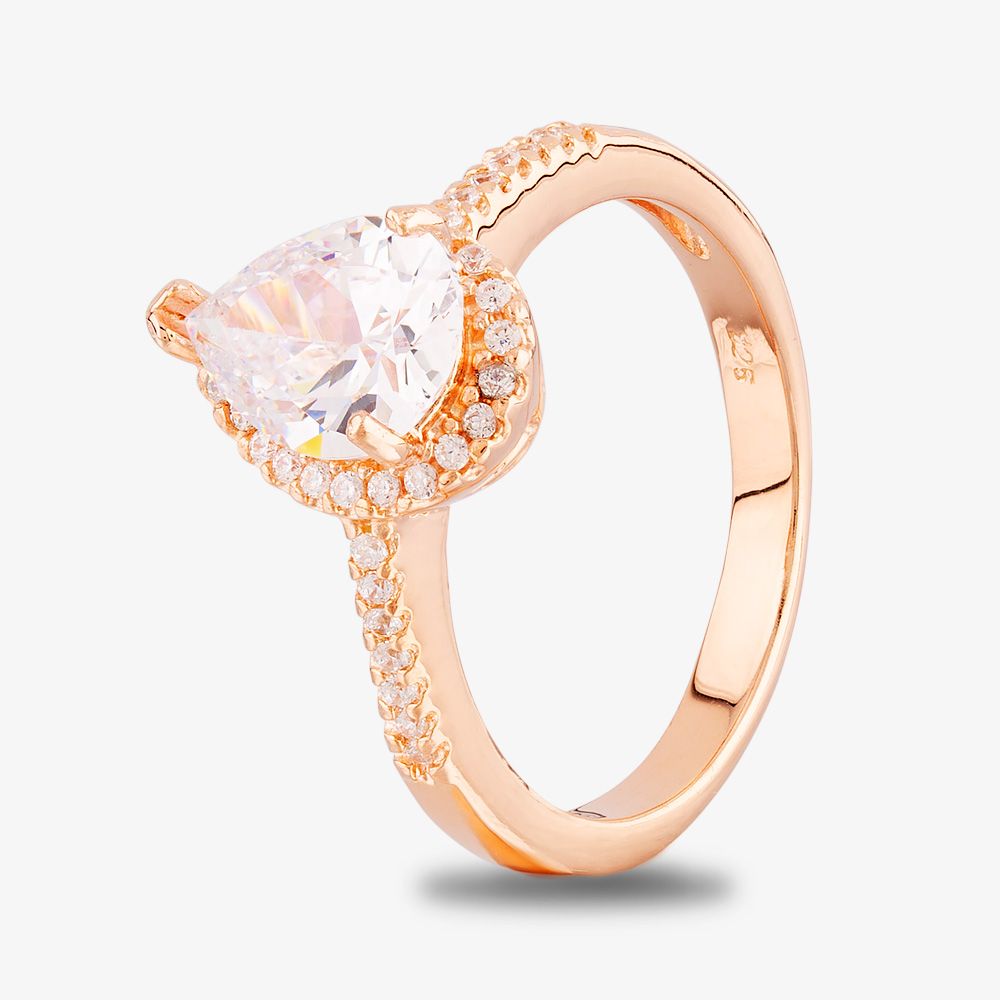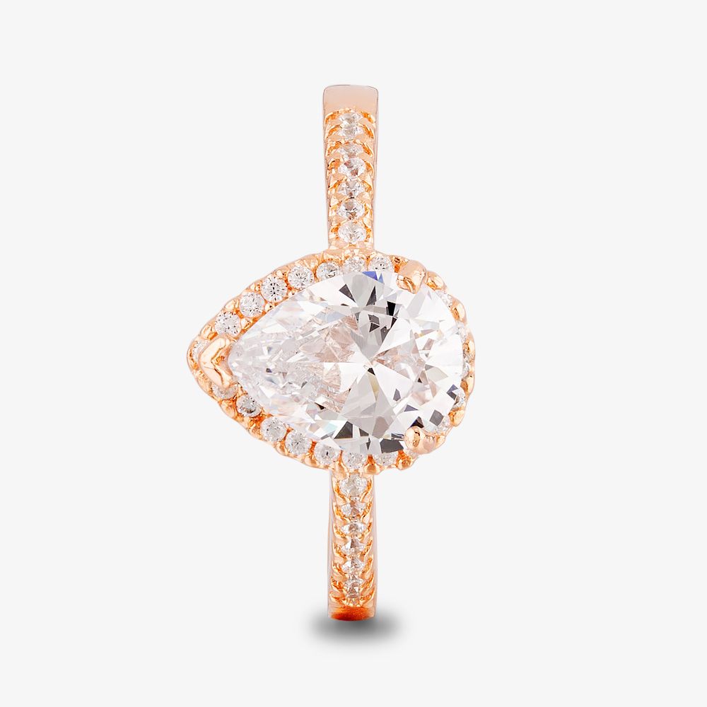 A pear-cut cubic zirconia stone is framed with delicate pavé to add a touch of shimmer to your wardrobe as the focus of this handcrafted rosy hued ring. The built-up pavé shoulders meet the cut-out raised mount just below the halo to ensure this ring sits high on the finger.