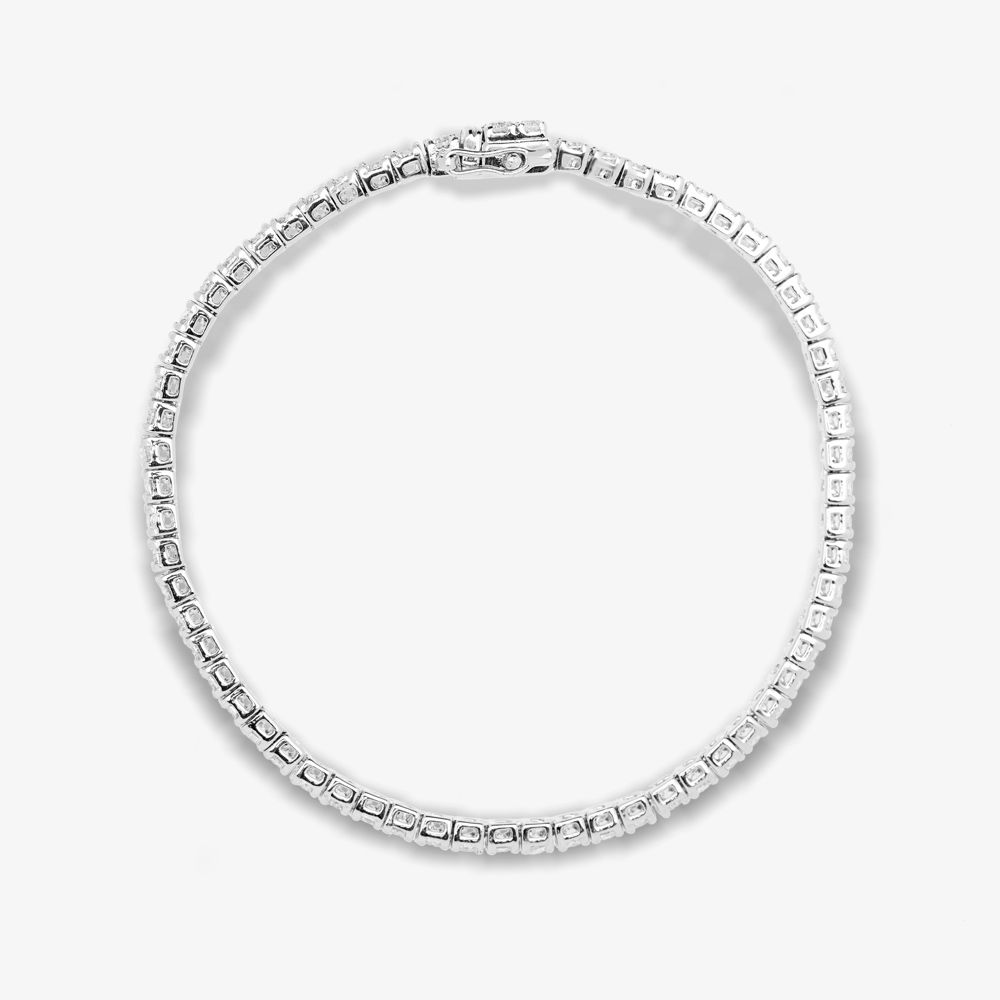 This traditional 7.5" sterling silver tennis bracelet is four-claw set with basket mounts to hold each round cubic zirconia stone securely. Fully articulate and fastened with a secure latch clasp, this piece is perfect for formal events and nights out with the girls.