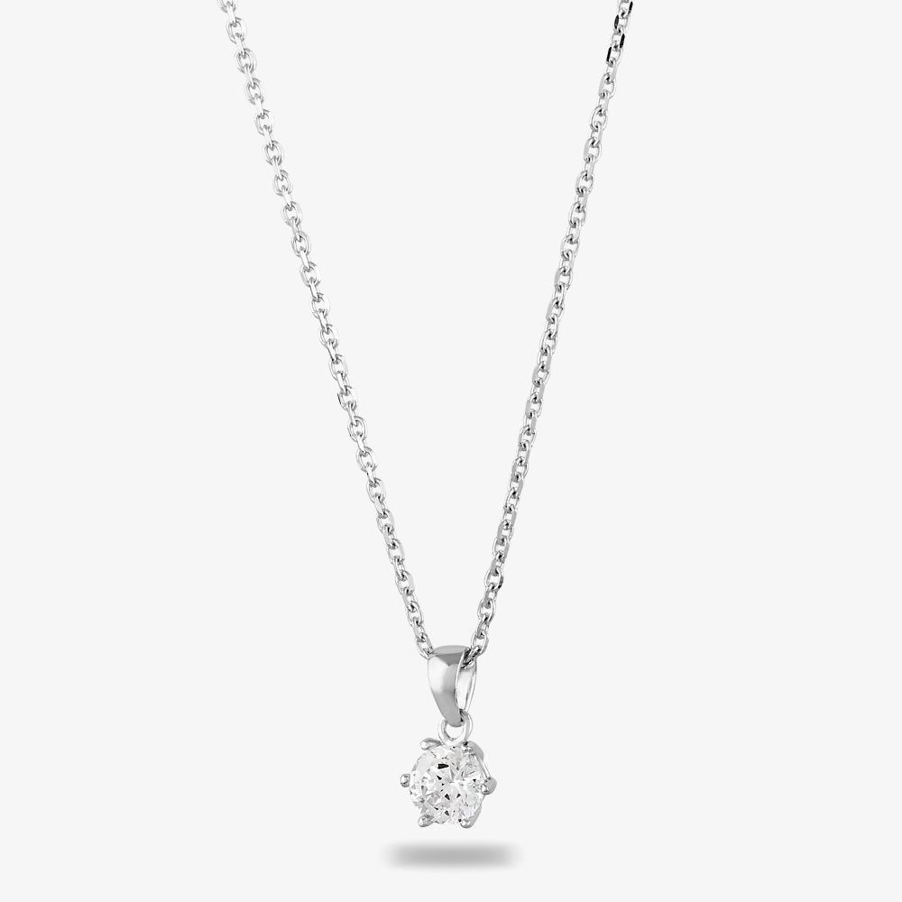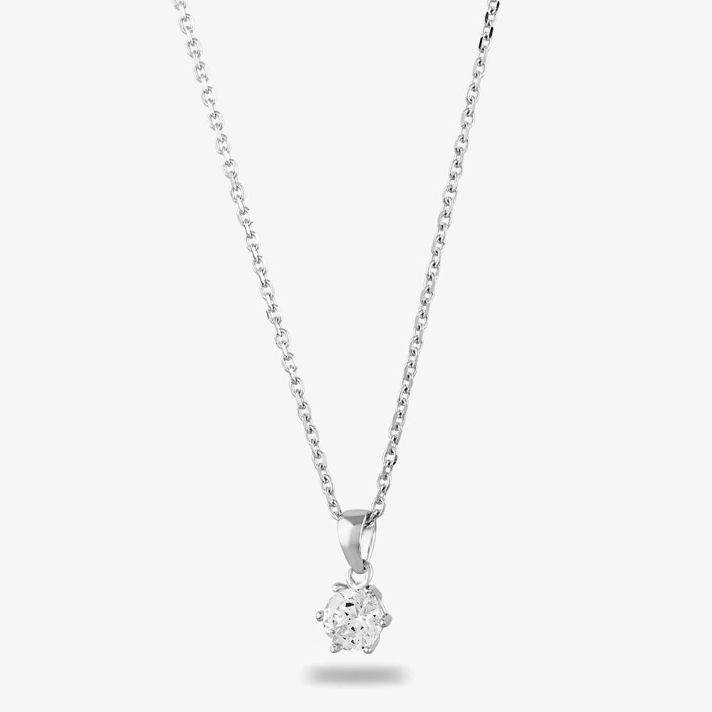 Give your outfits a stylish sparkle with this attractive pendant necklace from the Starbright range. The elegant sterling silver chain holds a six claw pendant and radiant round 6mm cubic zirconia, faceted to catch the light beautifully. A jewellery box essential to suit any occasion.