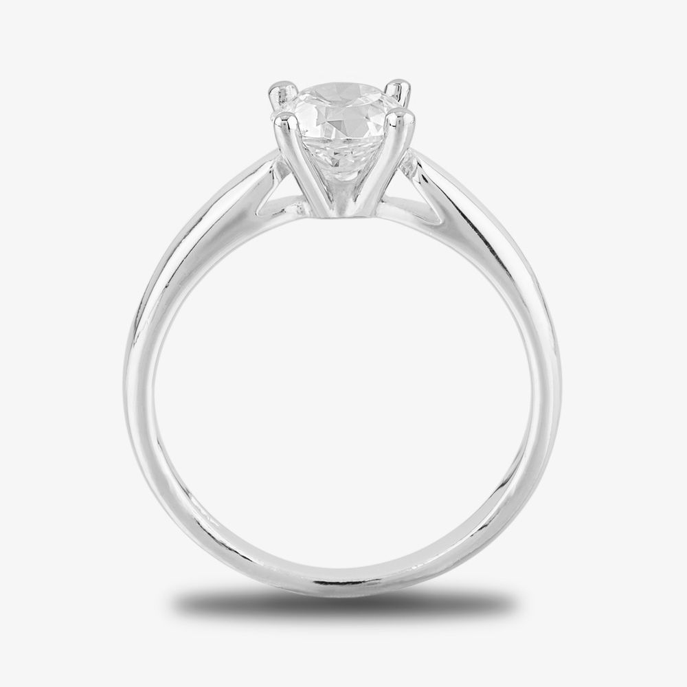 A beautifully faceted brilliant-cut cubic zirconia stone is securely held in a traditional four-claw setting, perfect for ensuring the maximum amount of light can enter the stone to ensure radiance and shimmer. The setting is further stabilised with open shoulders to allow the light to penetrate from a multitude of angles.
