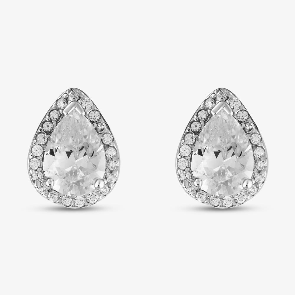 Twin pear-cut cubic zirconia stones are framed with delicate pavé to add a touch of shimmer to your wardrobe as the focus of these handcrafted sterling silver earrings. Subtle yet sparkling, these studs are perfect for lunch dates or nights on the town.