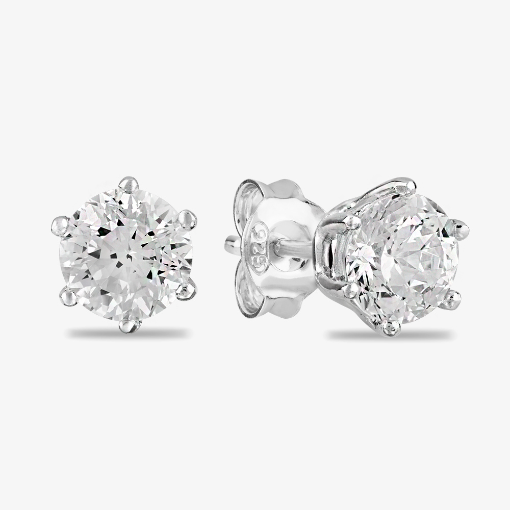A beautifully faceted brilliant-cut cubic zirconia stone is securely held in a contemporary six-claw basket setting, perfect for ensuring the maximum amount of light can enter the stone to ensure radiance and shimmer.