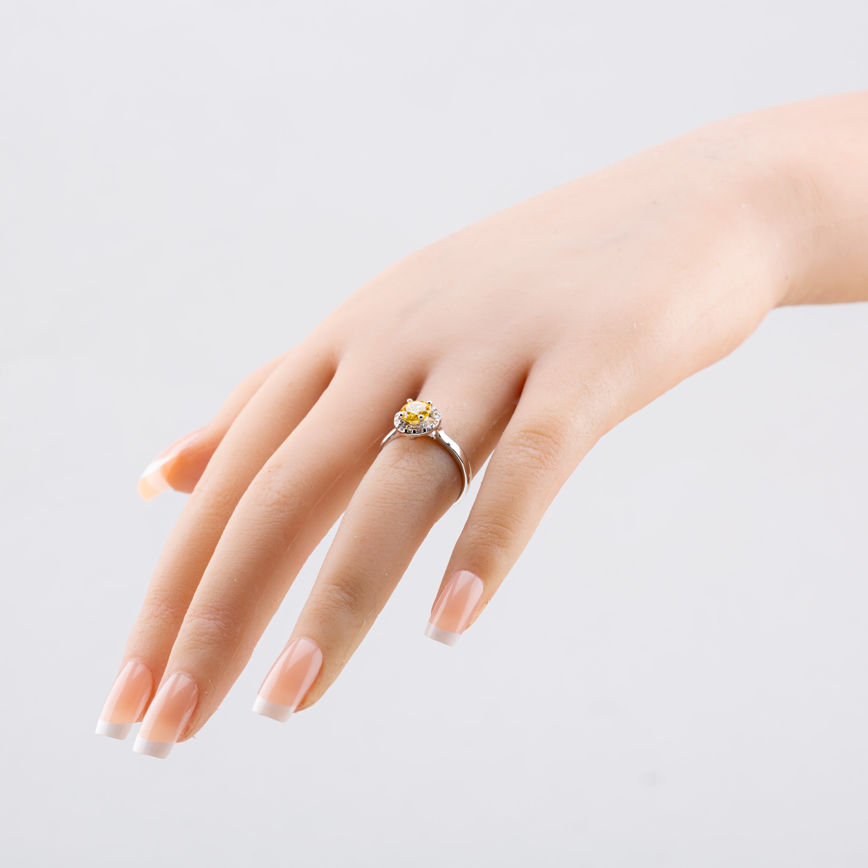 Make a bold statement with this Sterling Silver Yellow Brilliant Cut Cubic Zirconia Halo Cluster Ring. Featuring a dazzling yellow brilliant-cut cubic zirconia at its centre, surrounded by a sparkling halo of clear stones, this ring exudes elegance and sophistication. Set in polished sterling silver, it’s a stunning piece that adds a vibrant pop of colour and timeless charm to any look.