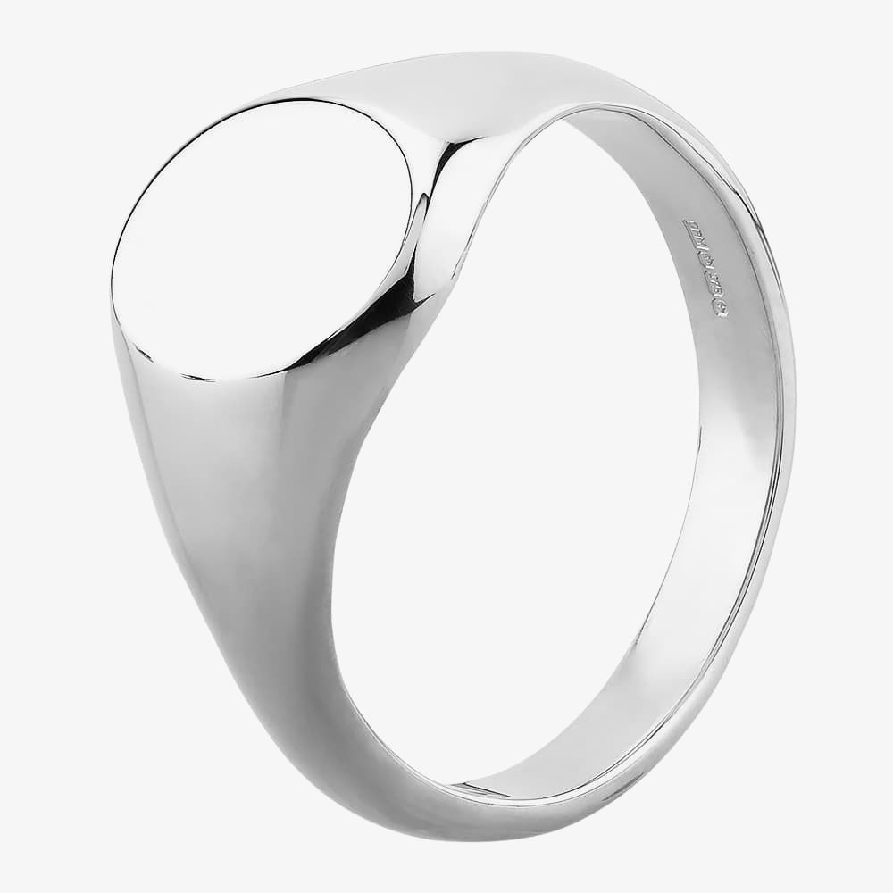 A ladies oval signet ring stamped from 2mm thick Sterling Silver.