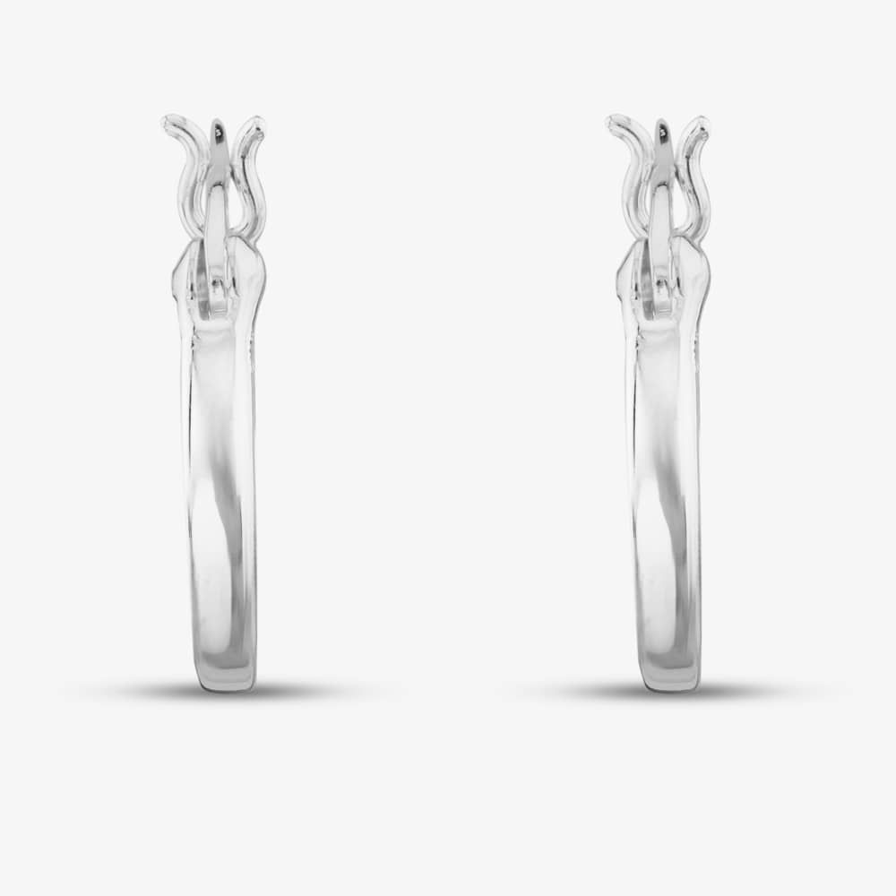 Combining the best of simple design and classic style, the Sterling Silver 15mm Square-Tube Hoop Earrings 8.53.9259 are a great staple piece for any wardrobe. Made from polished sterling silver, these 2mm wide square-tube hoop earrings have a 15mm diameter and fasten with a hinged post.