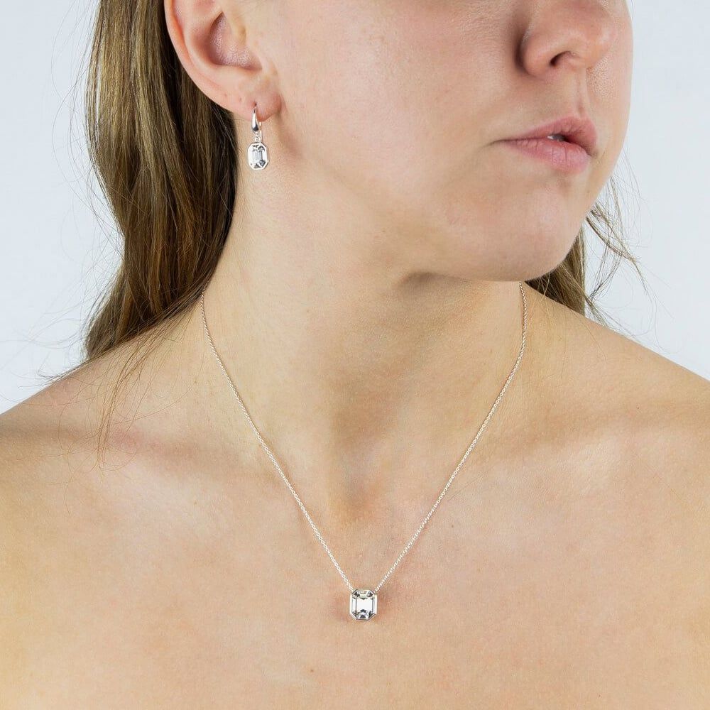 Crafted in sterling silver and a sparkling clear crystal, this necklace features an extendable length of 41cm-46cm and can be paired with the matching earrings for a complete set.