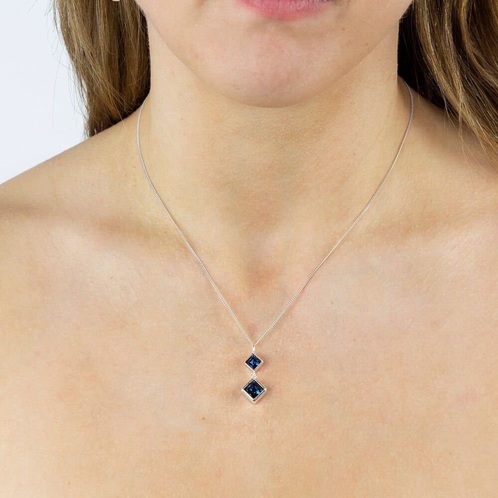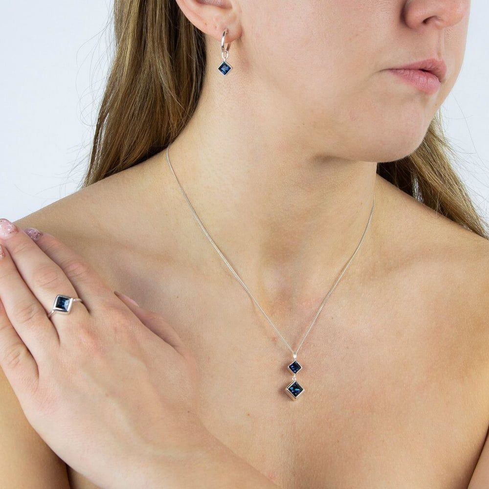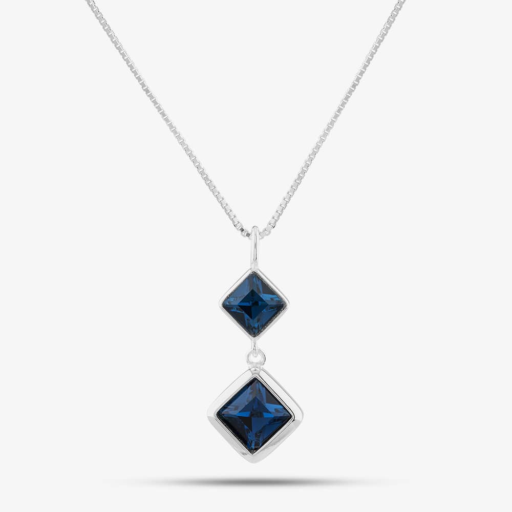 Crafted with sterling silver and Montana blue crystals, this pendant features a polished finish and can be worn alone or paired with the matching earrings. Adjustable 41cm-46cm.