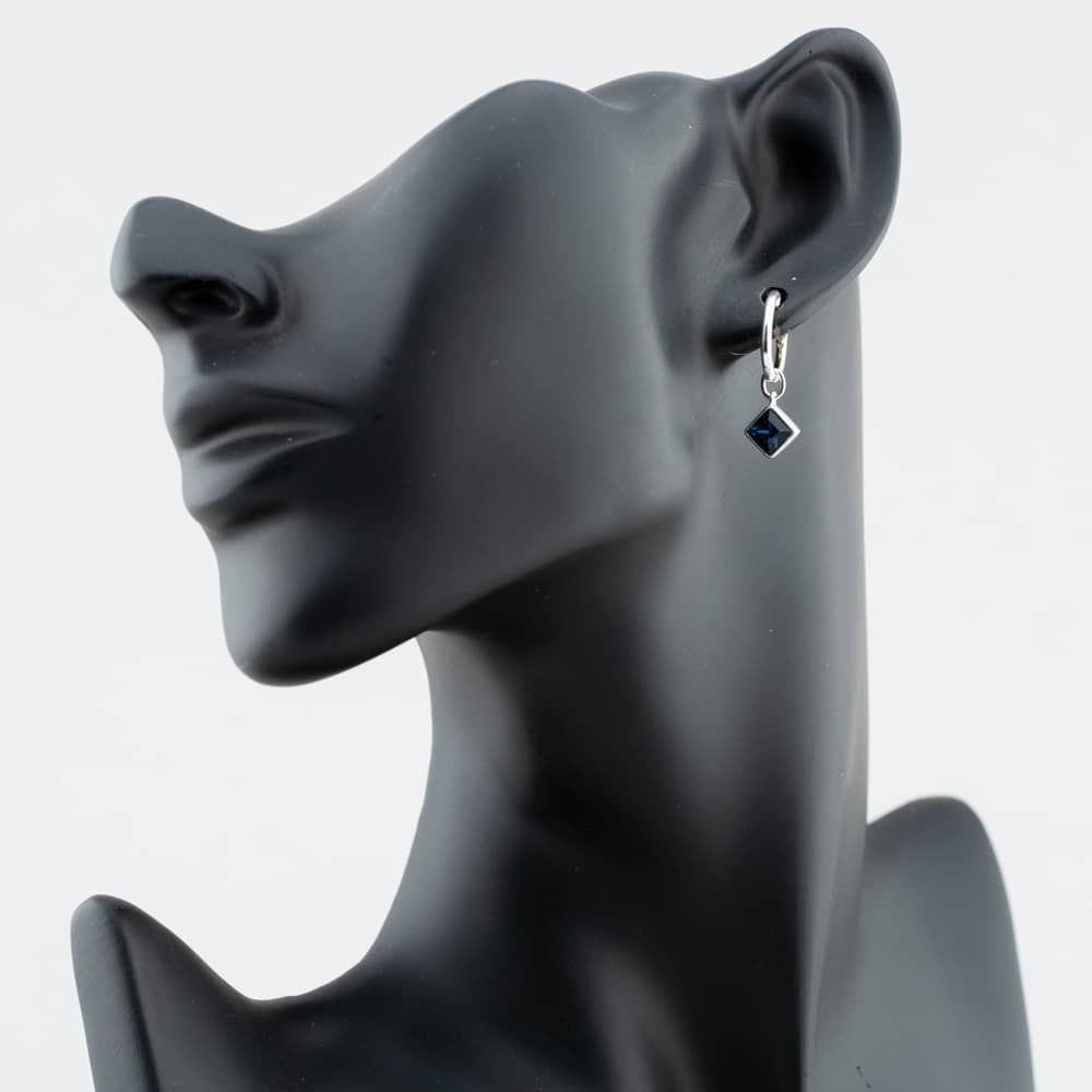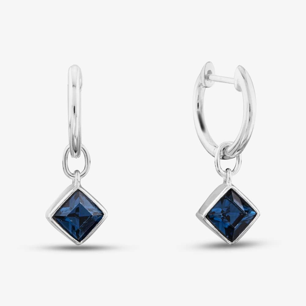 Crafted with sterling silver and Montana blue crystals, these hoop dropper earrings feature a polished finish and can be worn alone or paired with the matching pendant to complete the set.