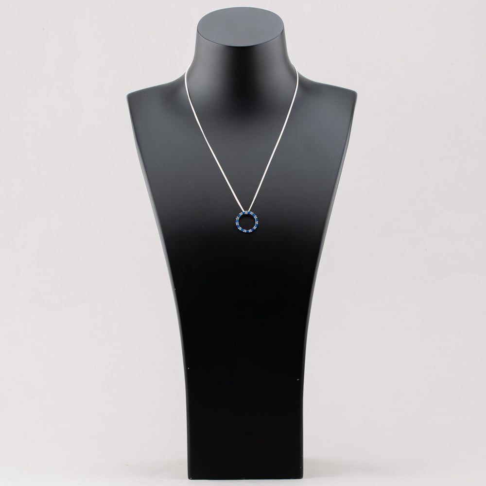 Add a touch of timeless elegance to your look with this sterling silver necklace. Featuring a sleek rope chain and a sparkling circle pendant set with blue and white cubic zirconia stones, creating an eye-catching piece that transitions from day to night. Finished with a secure bolt ring clasp, this necklace blends classic design with modern brilliance. Perfect for everyday wear or special occasions.