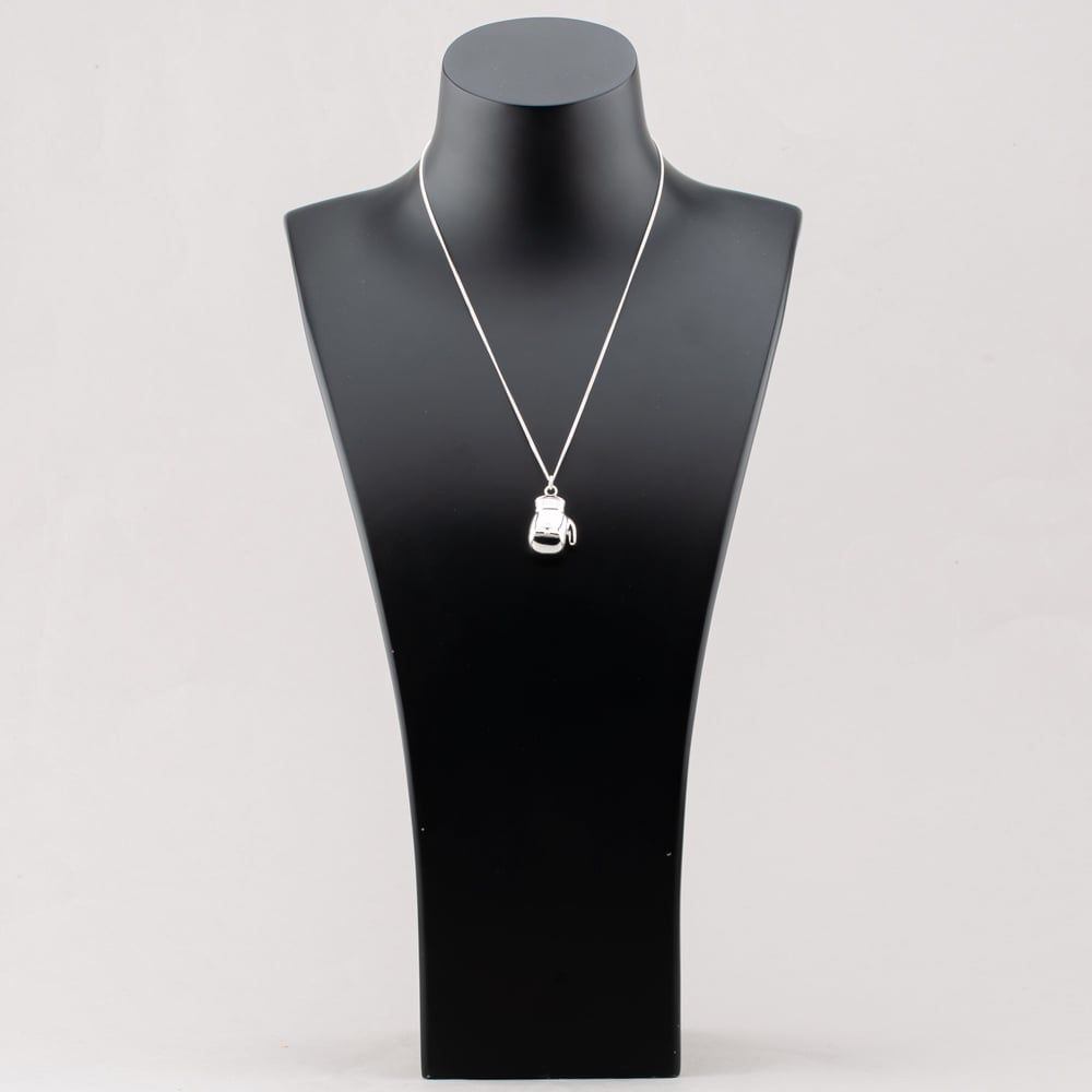Celebrate power and perseverance with this bold sterling silver necklace, featuring a meticulously crafted boxing glove pendant. Designed with a hidden surprise, the glove opens to reveal an intricate motif of two boxers in motion, capturing the spirit of the fight in stunning detail. Hung on a sturdy curb chain and fastened with a classic bolt ring clasp, this piece combines rugged symbolism with timeless style.