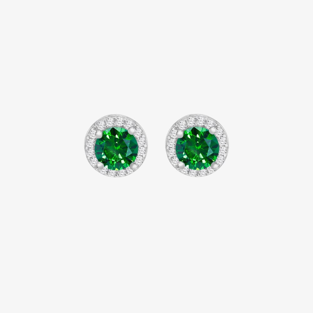 Add a sophisticated touch to your jewellery collection with these sterling silver rhodium plated green and white cubic zirconia halo stud earrings. Featuring two brilliant cut 5mm green stones, each surrounded by a halo of 32 sparkling 1mm white Cubic Zirconia stones, these earrings are designed to captivate attention. The rhodium plating not only provides a high-gloss, lasting finish but also ensures enhanced durability and resistance to tarnish. These earrings are comfortable for everyday wear or special occasions. Crafted in sterling silver, these earrings are the ideal accessory for adding a touch of refined glamour to any outfit.