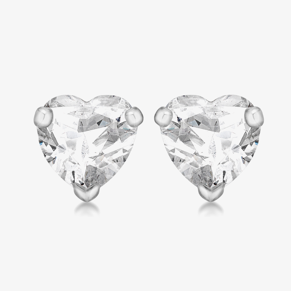 The perfect pair of earrings to add some stunning sparkle to any look, the Sterling Silver Crystal Heart Stud Earrings 8.57.7129 are made from rhodium-plated sterling silver and feature an 8mm x 7.5mm claw-set, heart-shaped clear cubic zirconia crystal, fastening with a butterfly back fixture.