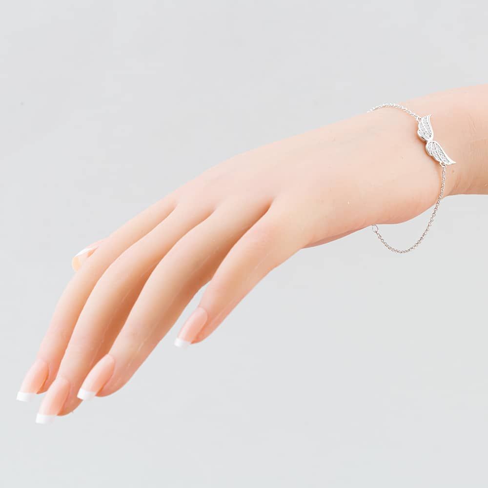 This minimalist sterling silver bracelet features a delicate angel wing charm set with cubic zirconia stones, symbolising protection and guidance. The adjustable trace chain ensures a comfortable fit for any wrist size.