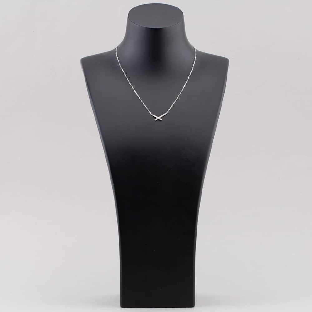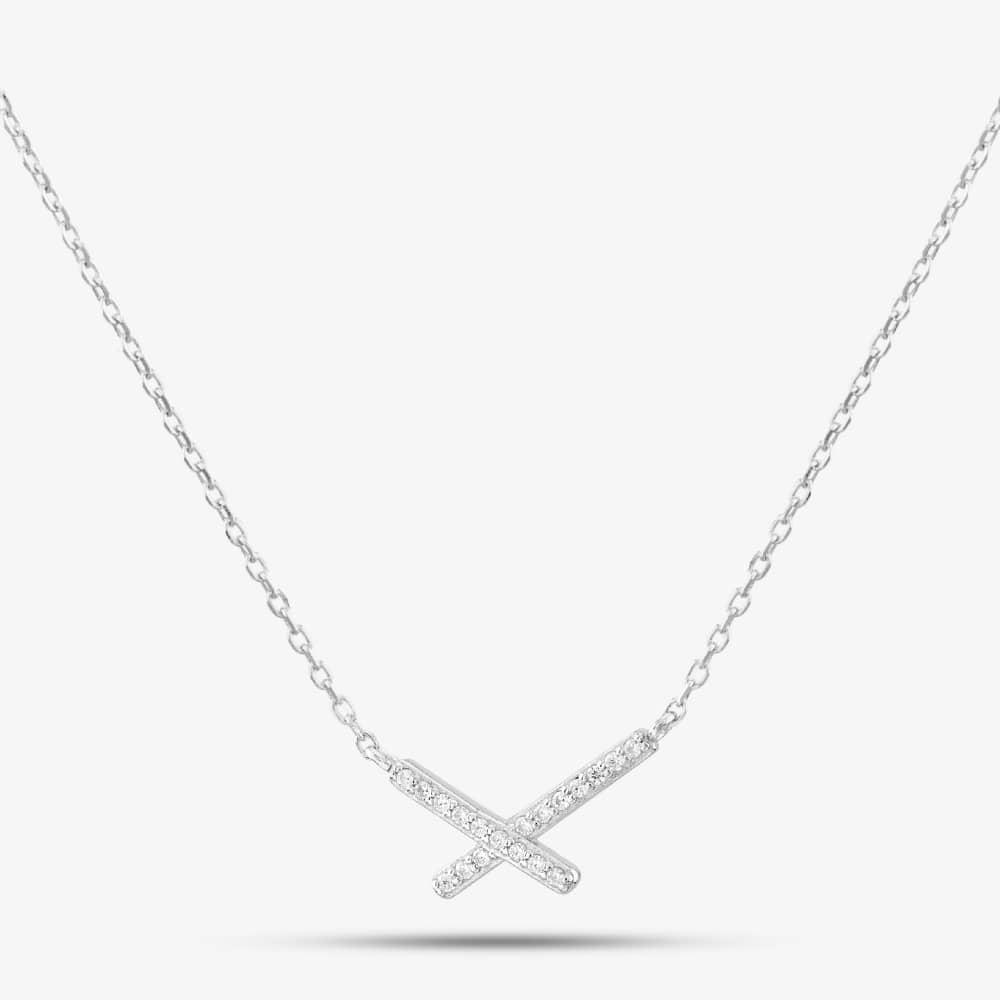 A pretty sterling silver necklace presented on a belcher chain with an offset cross centrepiece set with white cubic zirconia stones.