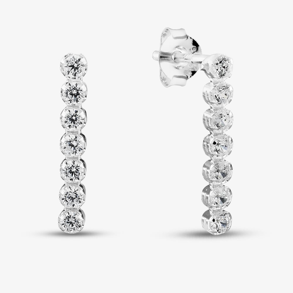 Add a touch of elegance with these cup chain earrings, crafted from recycled sterling silver and set with shimmering cubic zirconia. Their sleek, elongated design is perfect for everyday wear or special occasions. Pair with the matching necklace and bracelet for a complete look.