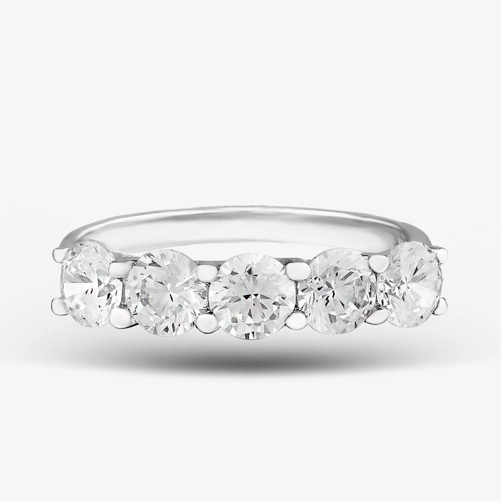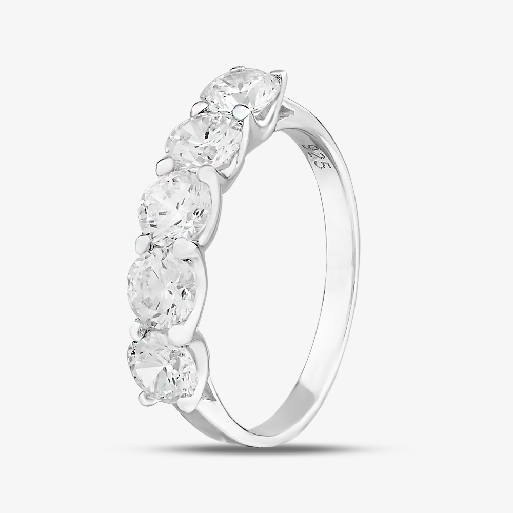 This sparkling sterling silver dress ring has been crafted with five glistening round cubic zirconia stones secured with claw settings. The perfect dress ring for that special occasion.