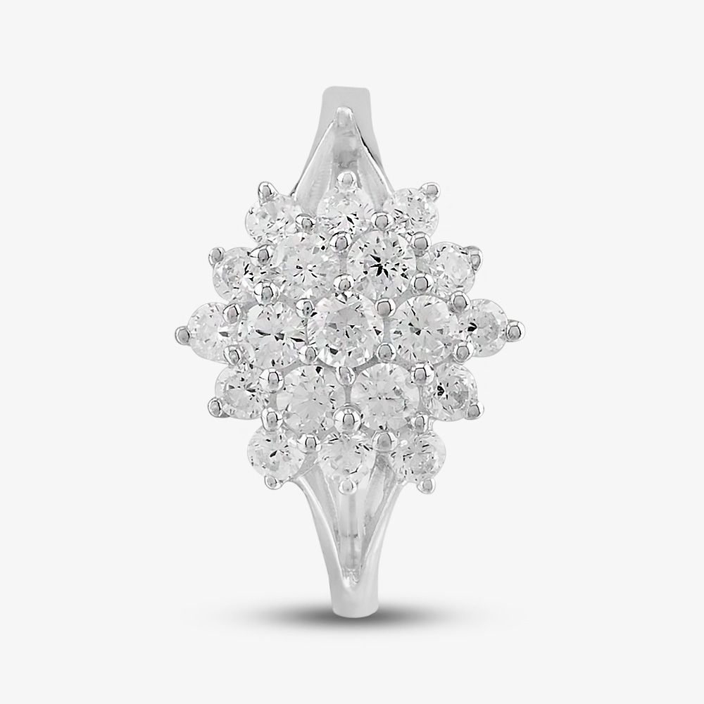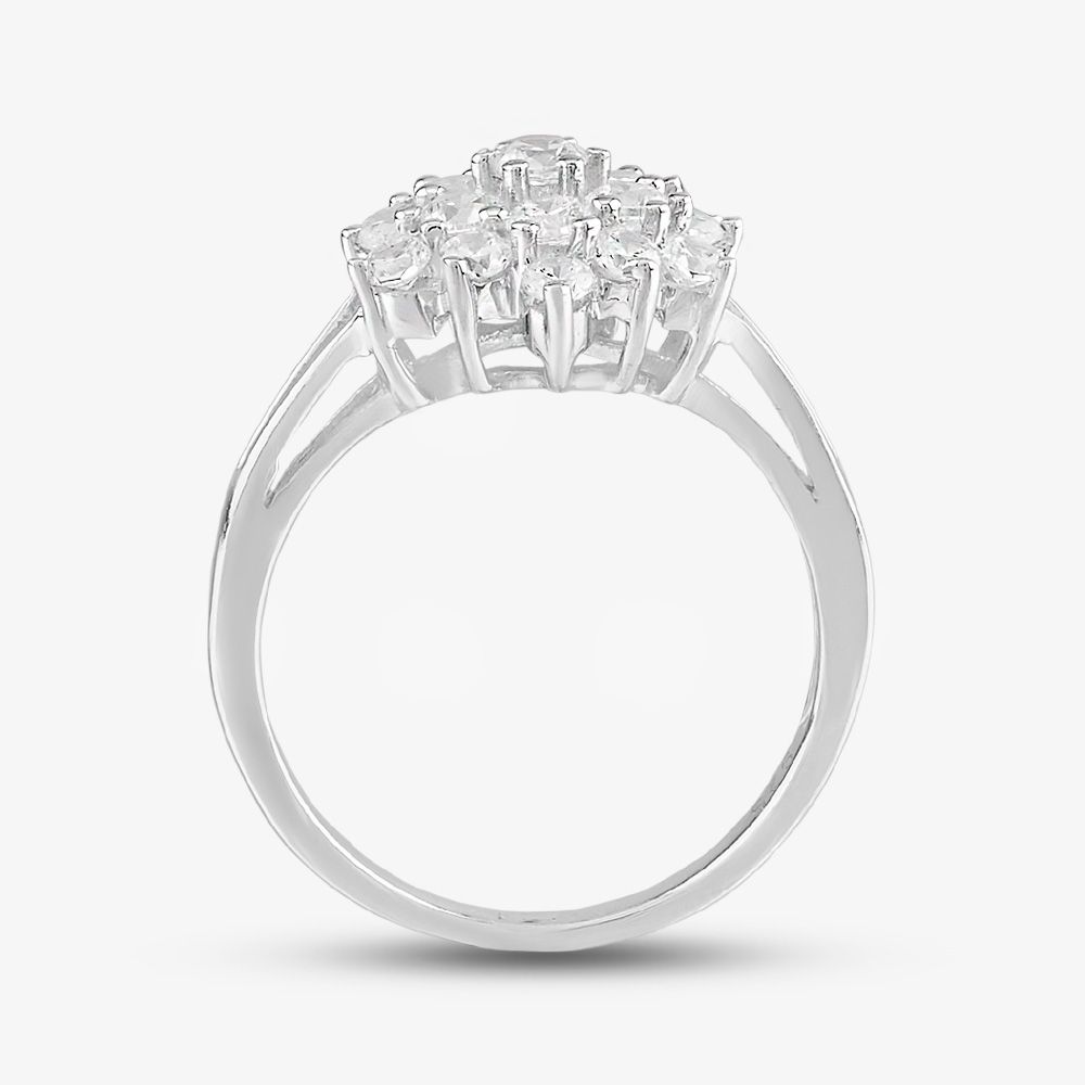 This sparkling steling silver dress ring has been crafted with glistening round cubic zirconia stones which are secured with claw settings. This ring catches the light beautifully making it the perfect dress ring for that special occasion.