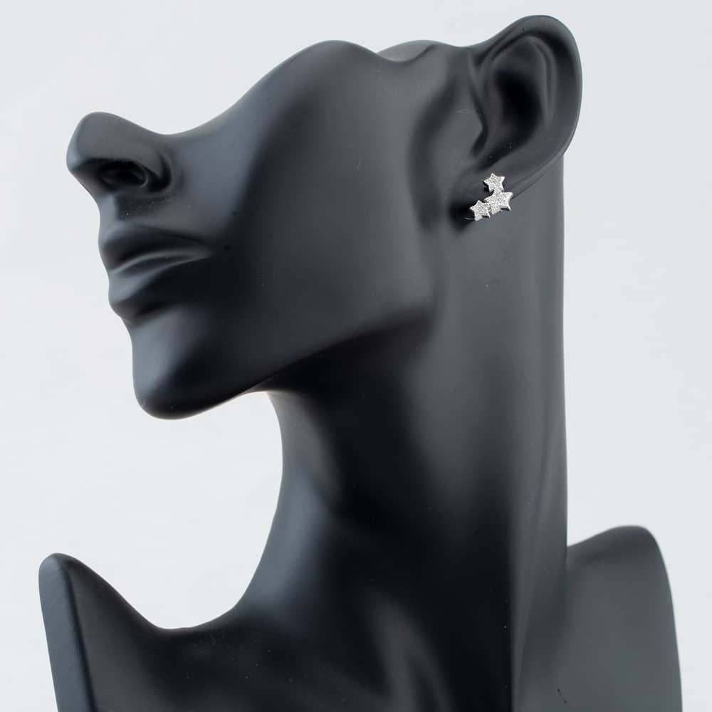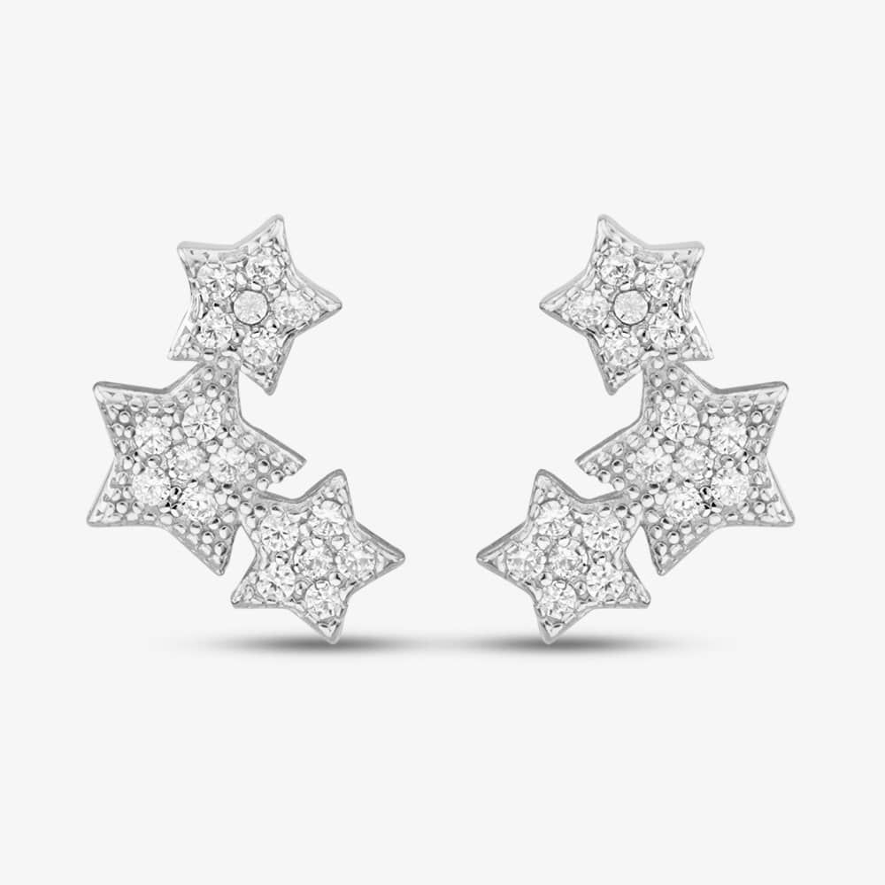 A pretty pair of stud earrings made from sterling silver consisting of stars set with sparkling white cubic zirconia stones.