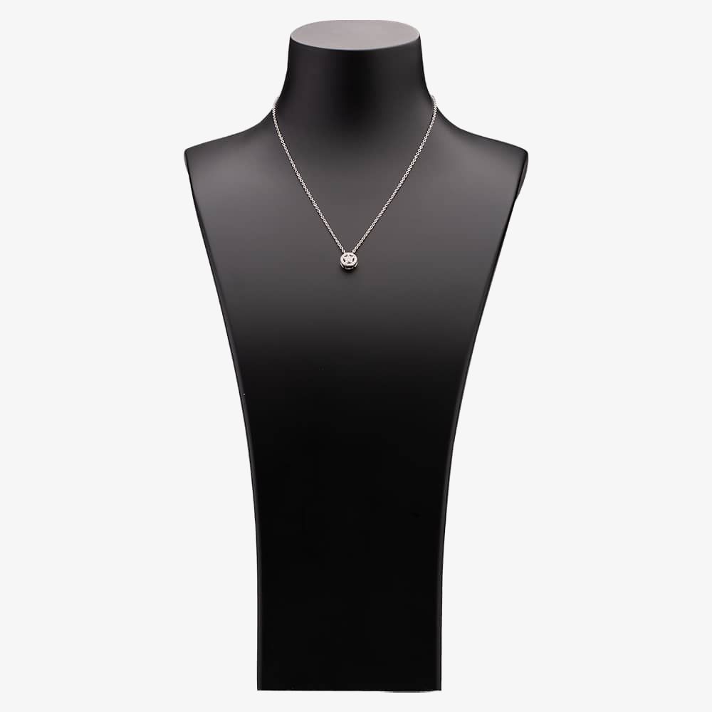 A beautiful sterling silver pendant composed of a star inside a circle. It is presented on a belcher chain and set with sparkling white cubic zirconia stones.