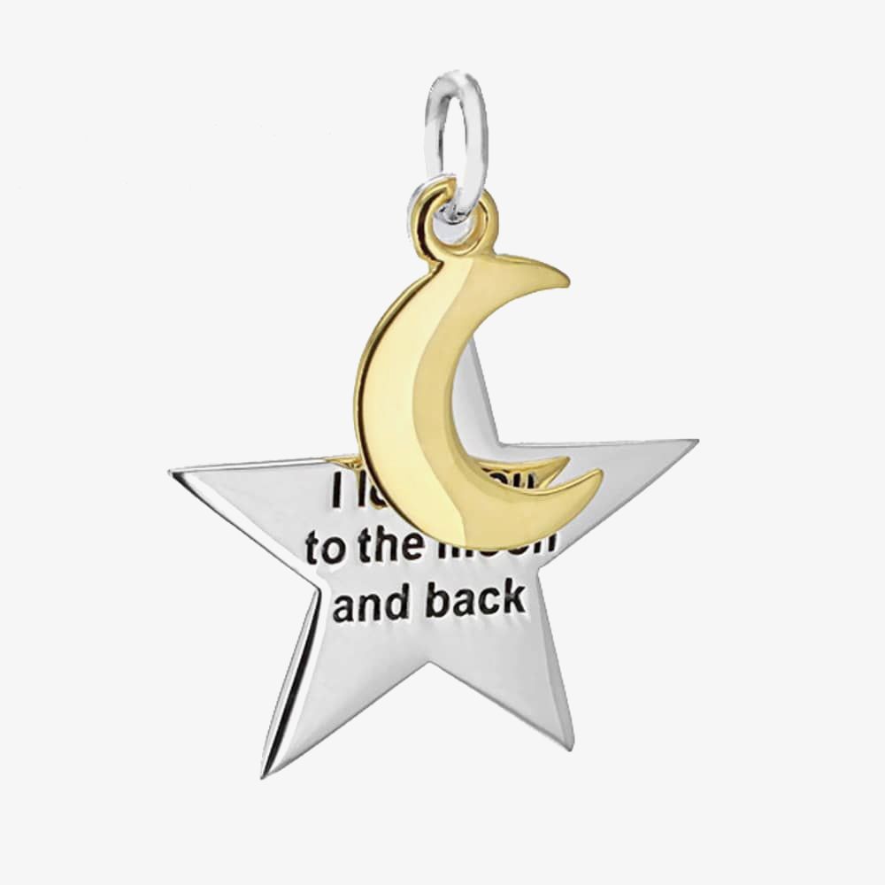 Show your loved one how much you care for them this season with the adorable Moon and star pendant. Crafted from sterling silver, featuring a gorgeous gold plated crescent moon and silver star, engraved with an adorable message your special someone is sure to treasure.