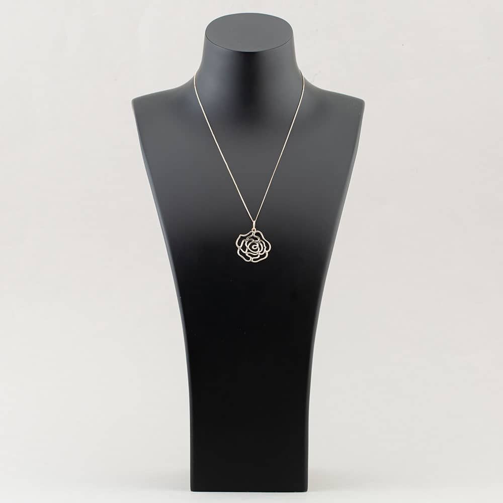 Crafted from sterling silver, this stunning pendant boasts a sophisticated cut out rose design. An elegant pendant from the T H Baker Collection, perfect for adding a feminine touch to any outfit.