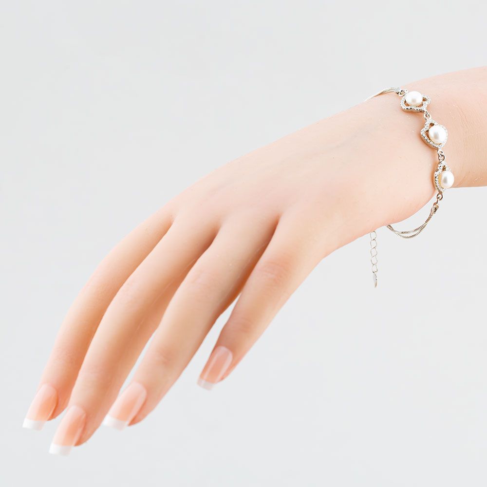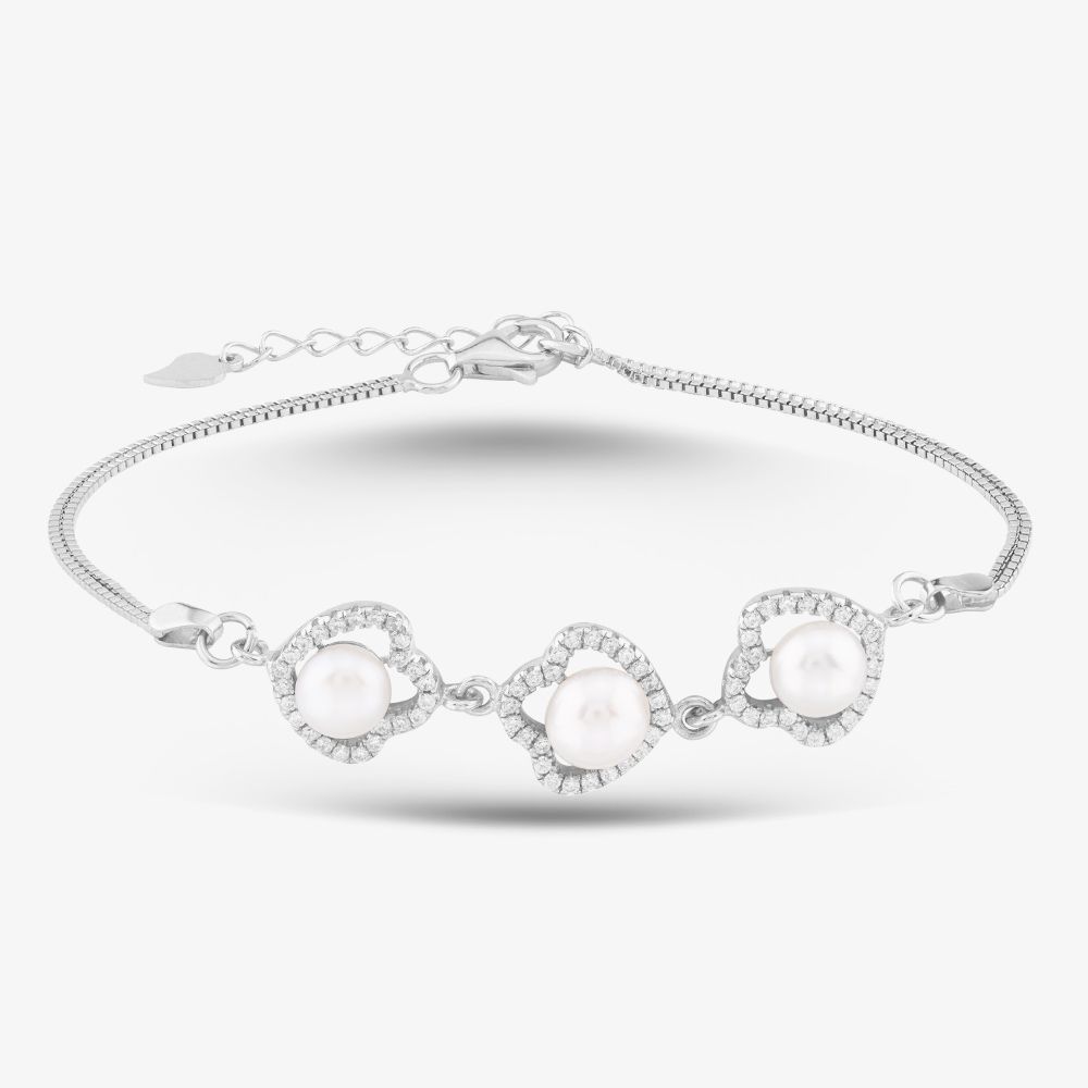 Crafted in sterling silver this beautiful bracelet features an eye catching design. The bracelet features three cubic zirconia set pendants with freshwater pearl elements. Wear individually or pair with similar pearl jewellery from the collection for a classic finish to your look.