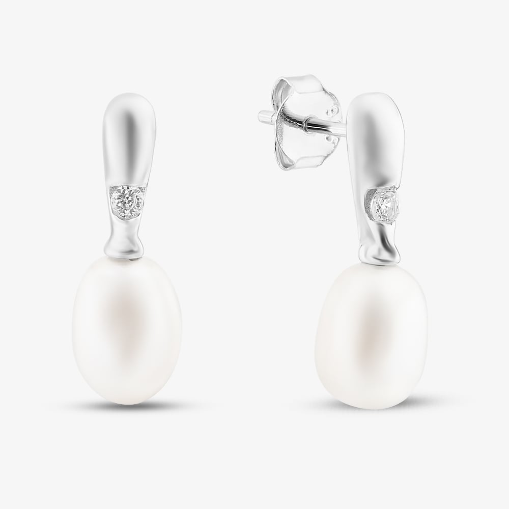Refined and elegant, these earrings combine lustrous freshwater pearls and sparkling white cubic zirconia's to create a timeless treasure suitable for every day wear and special occasions. Crafted from sterling silver and complete with a post and butterfly fastening, these earrings are perfect for gifting or adding to your own jewellery collection.