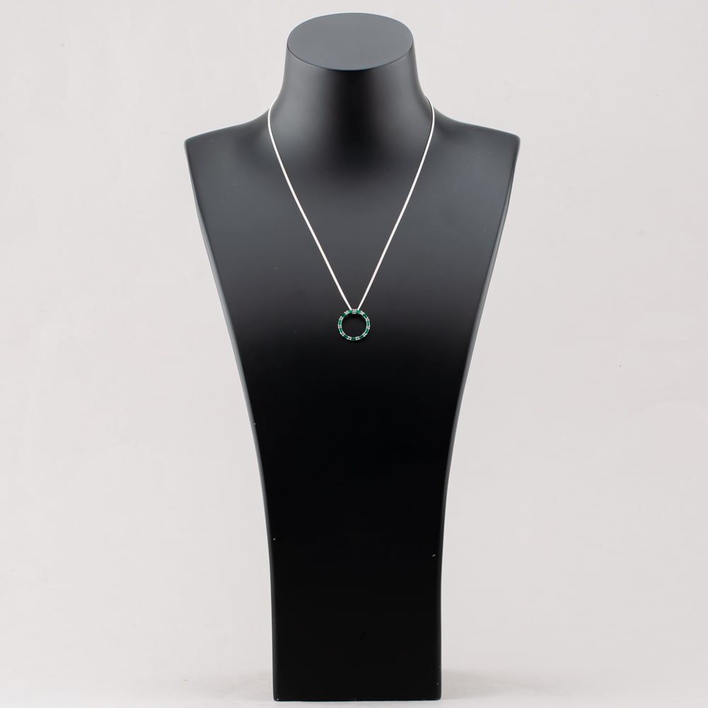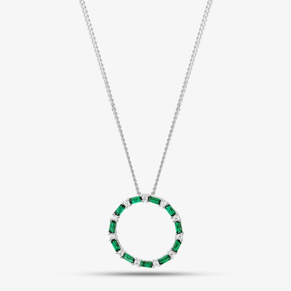 Refresh your jewellery collection with this elegant sterling silver necklace, featuring a refined rope chain and a shimmering circle pendant set with green and white cubic zirconia stones. The vibrant green stones paired with brilliant white accents evoke a sense of natural beauty and timeless charm. Finished with a secure bolt ring clasp.