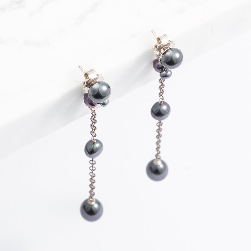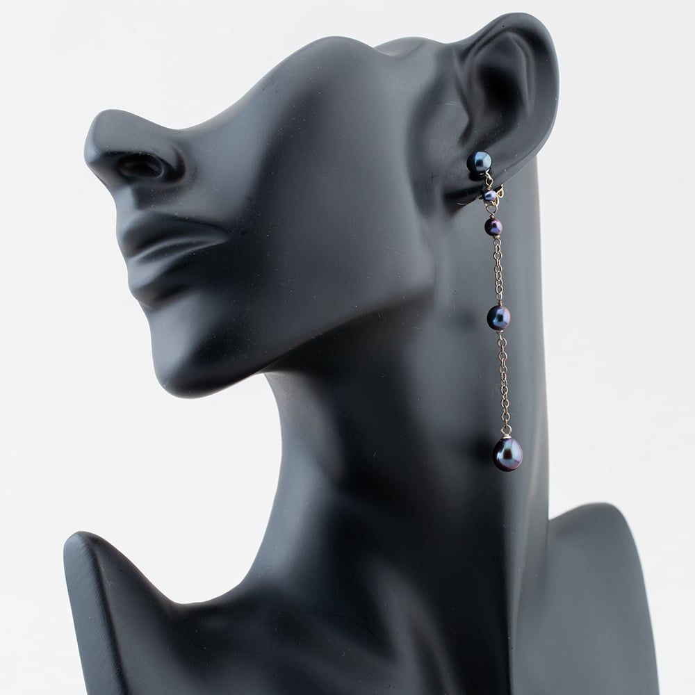 Elegantly crafted in sterling silver, these dropper earrings feature stunning peacock pearls that shimmer with iridescent hues. The timeless design adds a touch of sophistication, making them a perfect accessory for both formal and casual occasions.