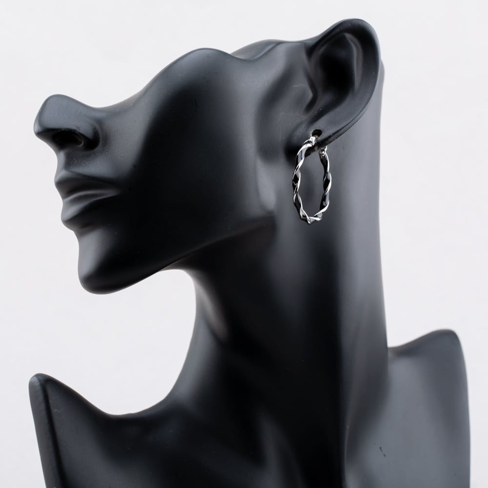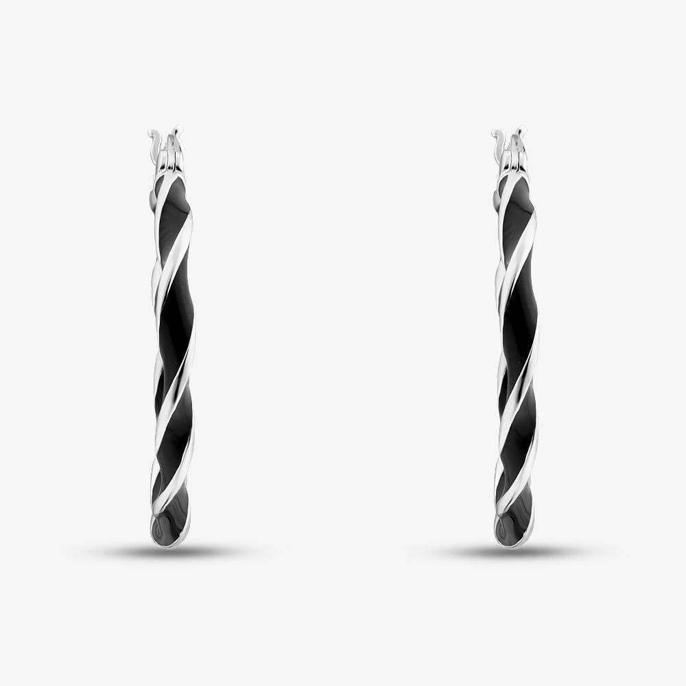Crafted from high-quality sterling silver and coated with a brilliant, tarnish-resistant rhodium plating, these earrings offer the luxurious sheen. The intricate twister pattern, highlighted by smooth black enamel, creates a striking visual contrast and a contemporary appeal.
