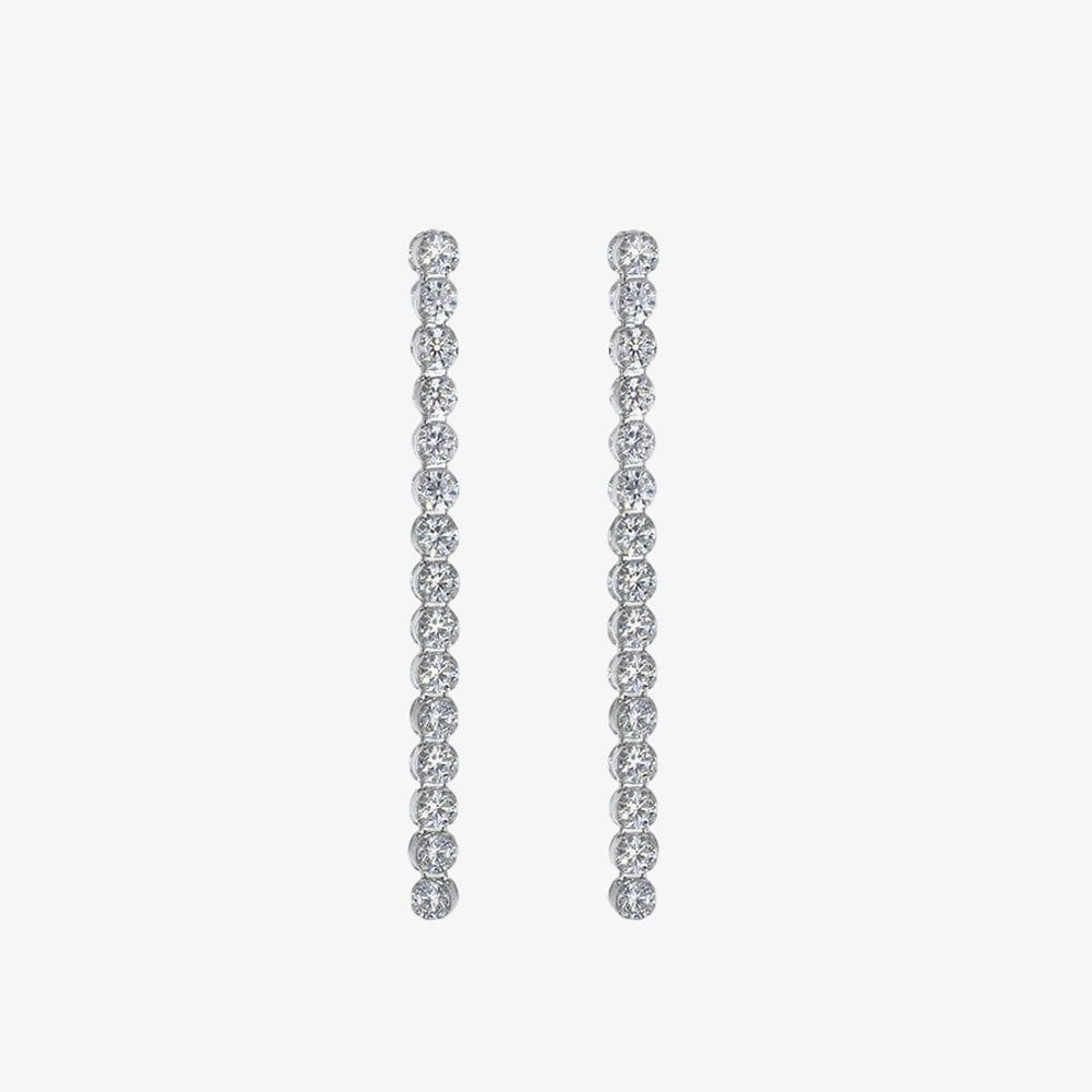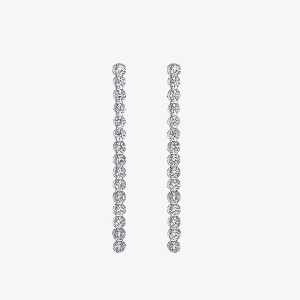 Crafted from premium sterling silver and finished with a lustrous rhodium plating, these earrings offer lasting shine and resistance to tarnish. Featuring sparkling white cubic zirconia stones, these delicate drop earrings catch the light beautifully, making them perfect for both everyday wear and special occasions. Lightweight and comfortable, they effortlessly enhance any outfit with a refined, graceful sparkle.
