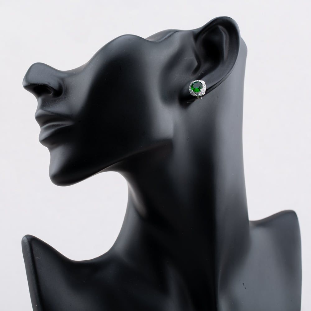 Crafted from high-quality sterling silver, known for its lasting beauty and durability, these earrings are further enhanced with rhodium plating, providing superior protection against tarnishing and everyday wear. Each earring features a captivating combination of white and green cubic zirconia stones. The precisely cut cubic zirconia stones are expertly set to maximise their brilliance, creating a dazzling display that beautifully catches the light. The striking contrast between the pristine white and luscious green adds a unique and eye-catching element, making these studs a versatile accessory for both casual and more formal occasions.