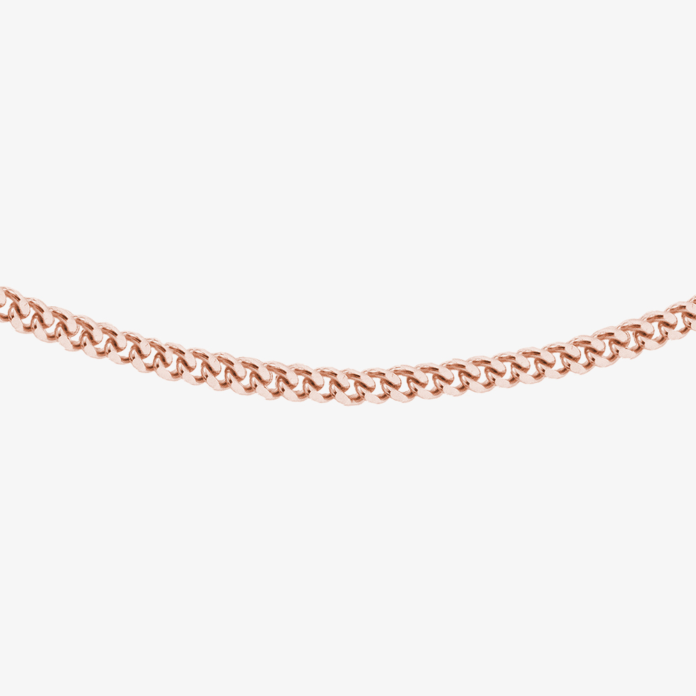 The perfect addition to any jewellery box to add some subtle elegance, the Sterling Silver Rose Gold Panza Curb Chain Necklace offers classic style to anyone who wears it. Made from rose gold plated sterling silver and 1.1mm wide, this curb chain features a pattern of interlocking links and fastens with a lobster-claw clasp.