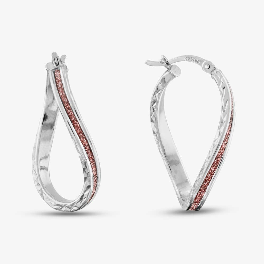 Adding some glitz and glamour to any occasion, the Sterling Silver Rose Stardust Textured Creole Earrings 8.51.2059 are a must-have. Made from rhodium plated sterling silver, these 19mm x 28.5mm tapered creole earrings have a 3.3mm x 2mm wide tube and fasten with a hinged post, featuring rose gold stardust detail and a diamond-cut texture to give you some extra sparkle.