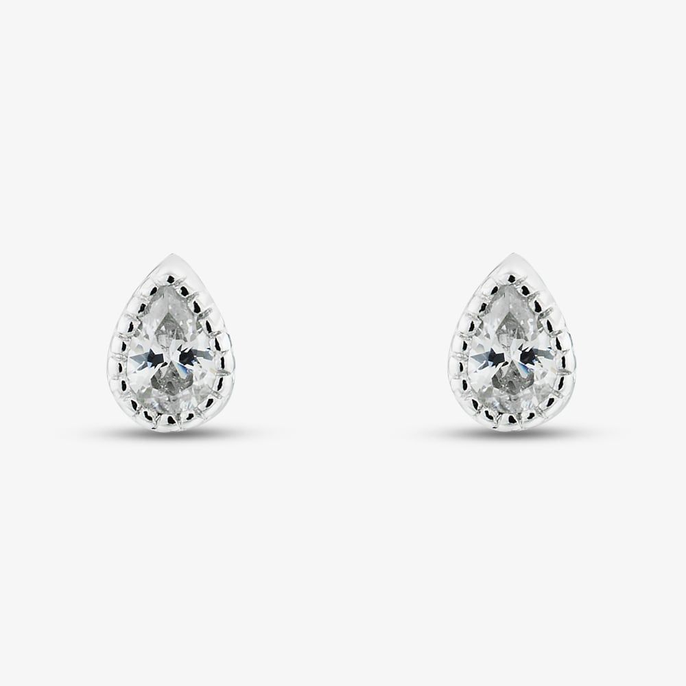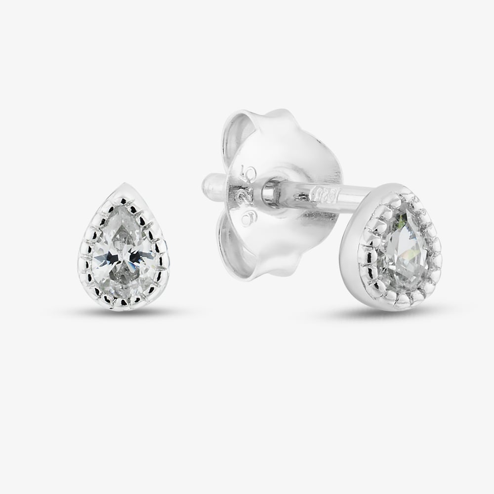 With the perfect amount of elegant sparkle, these small teardrop stud earrings will make a great addition to all jewellery collections and are ideal for creating stacked styles on the ear. Crafted in recycled sterling silver, these earrings feature beautiful bezel set cubic zirconia stones and a size of approximately 3mm.