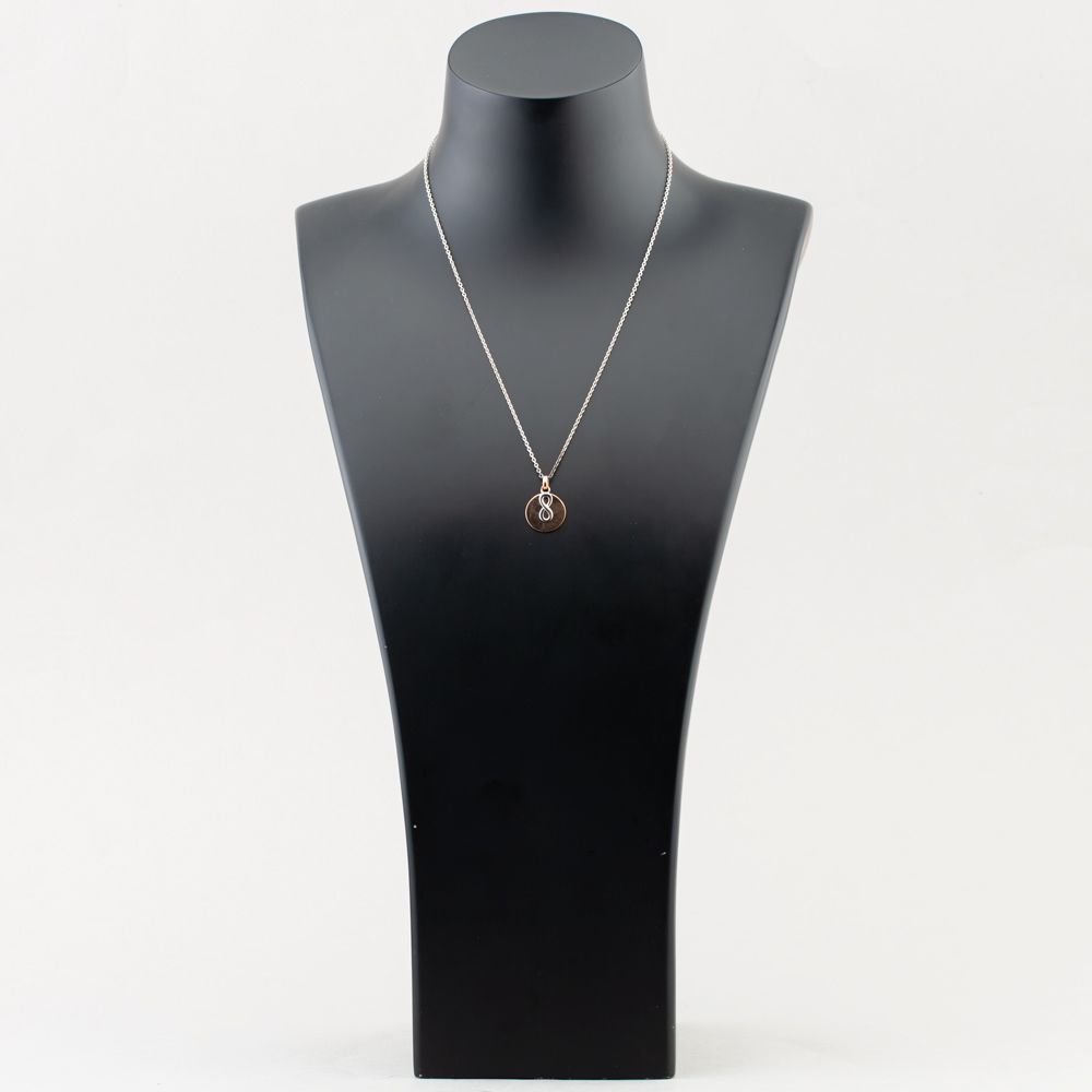 A lovely sterling silver pendant crafted with a rose gold plated round disc accompanied with a silver infinity symbol. The ideal gift for that special someone.