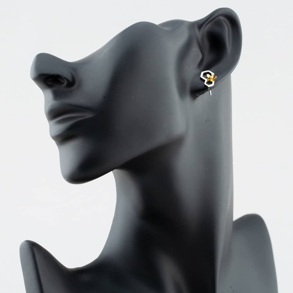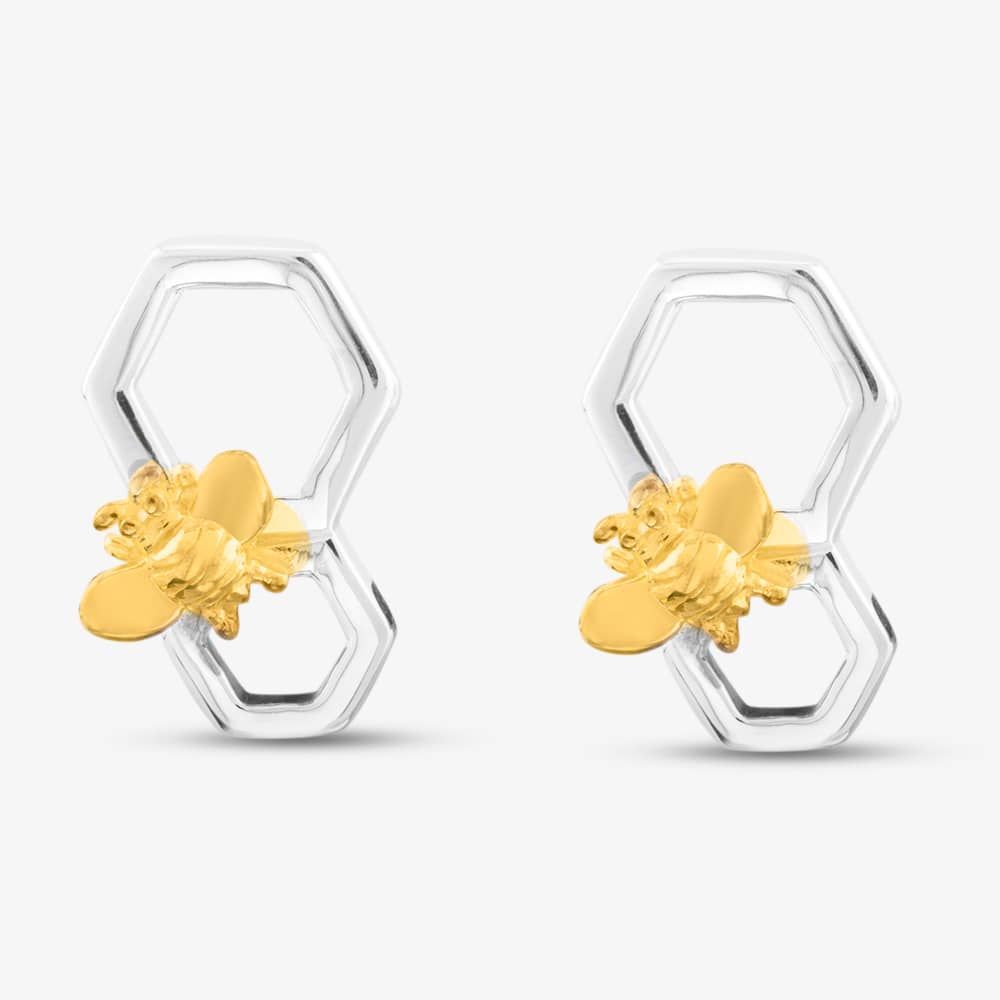 These honeycomb and bee silver and yellow gold-plated earrings are perfect for adding some extra fun to your outfit. Made in sterling silver with a polished finish. Why not team up with the matching pendant for a complete elegant look.